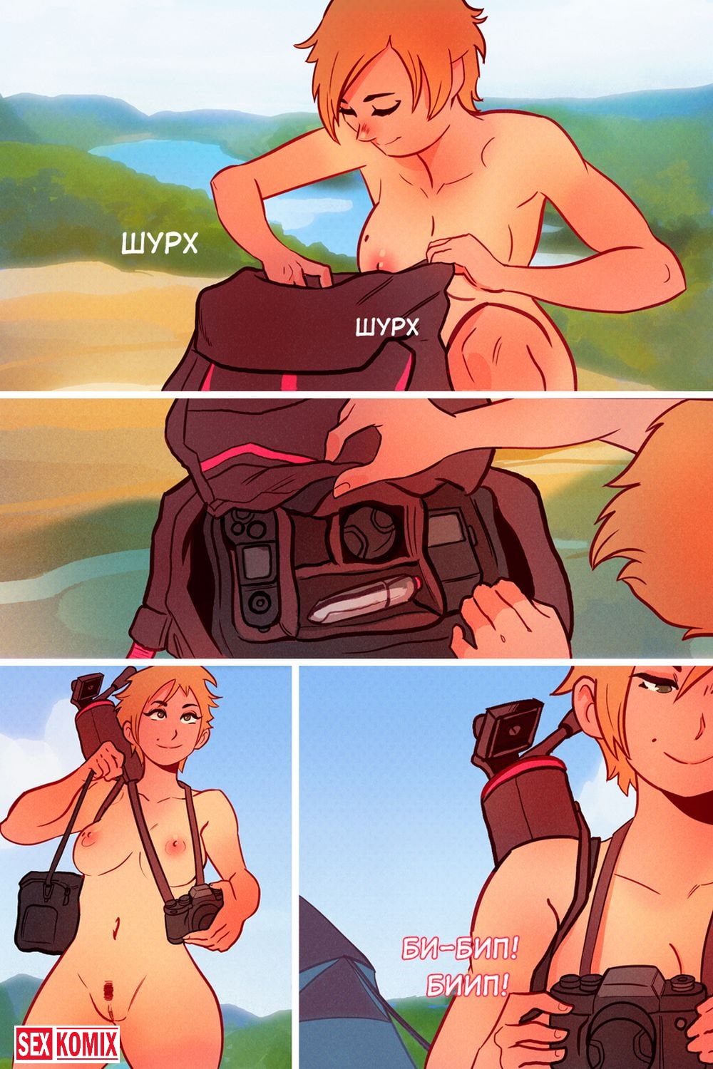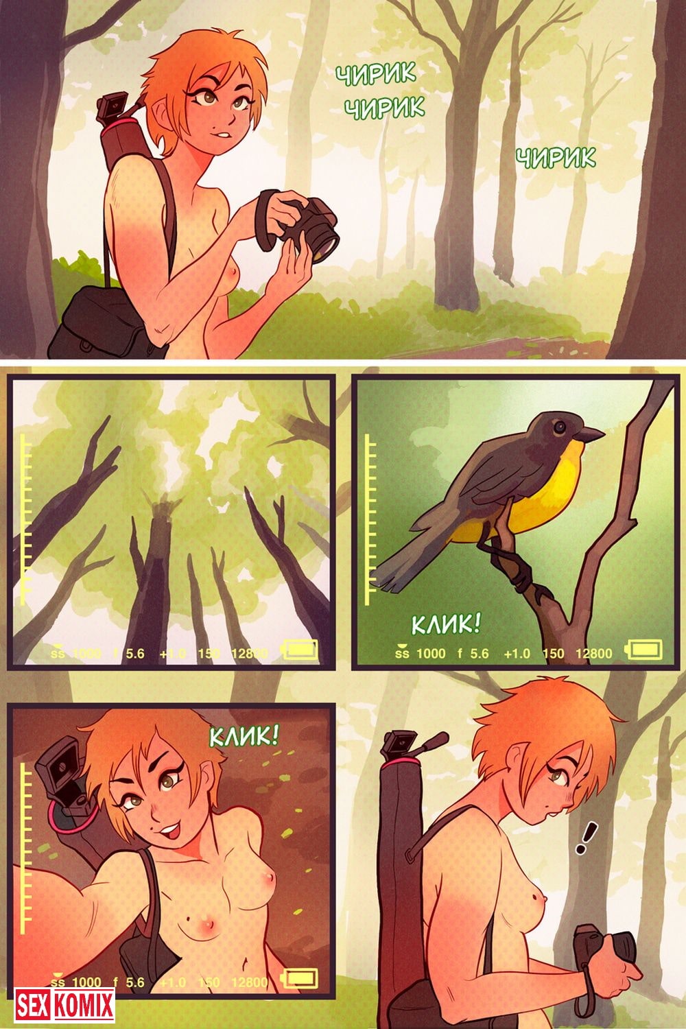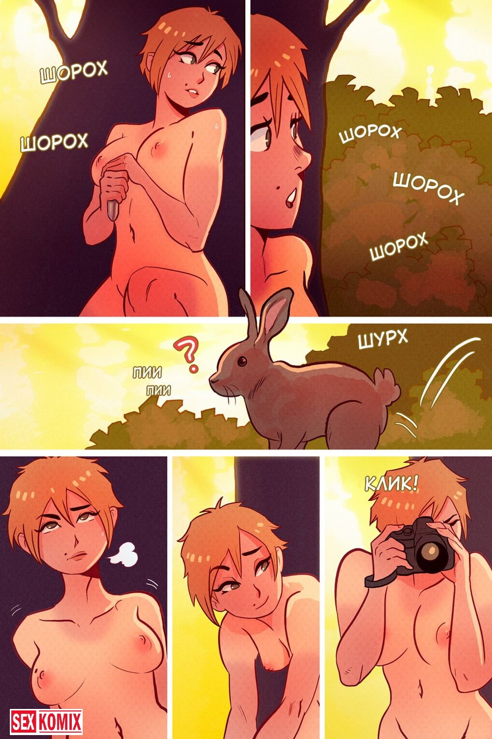 Порно комикс Кассиди на природе. Молодая девушка отправилась в лес, чтобы сделать несколько снимком животных и хорошо провести время. Она расположилась поудобней на покрывале пока ждала появления живности. Пришлось ждать долги и красотка решила немного развлечься, достала свой вибратор, осмотрелась, что никого нет по близости. И начала мастурбировать на свежем воздухе, теплый ветерок и ощущение свободы предавала приятные ощущения. И зверушки собрались посмотреть на неё, вот теперь можно и пофотографировать.