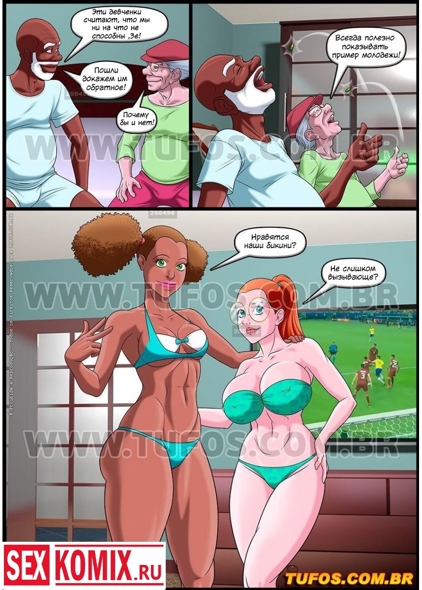Порно комикс Удалые старички. Часть 8. Внучки на пляже. Двое развратных дедов приехали в гости к своим внучкам, чтобы вместе потратить своё состояние. Девушка позволили себе переодеваться перед ними, это значит, внучки считают стариков не дееспособными. Тогда жеребцы решили доказать обратное и достали свои стоящие члены внушительных размером. Такого красотки не видели даже у своих сверстников, и сазу захотели трахнуться с ними. Но деды предложили для начала пососать их члены, а потом и все остальное.