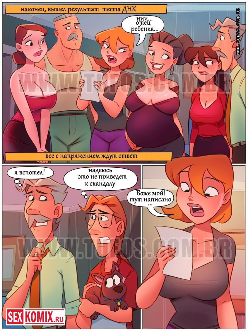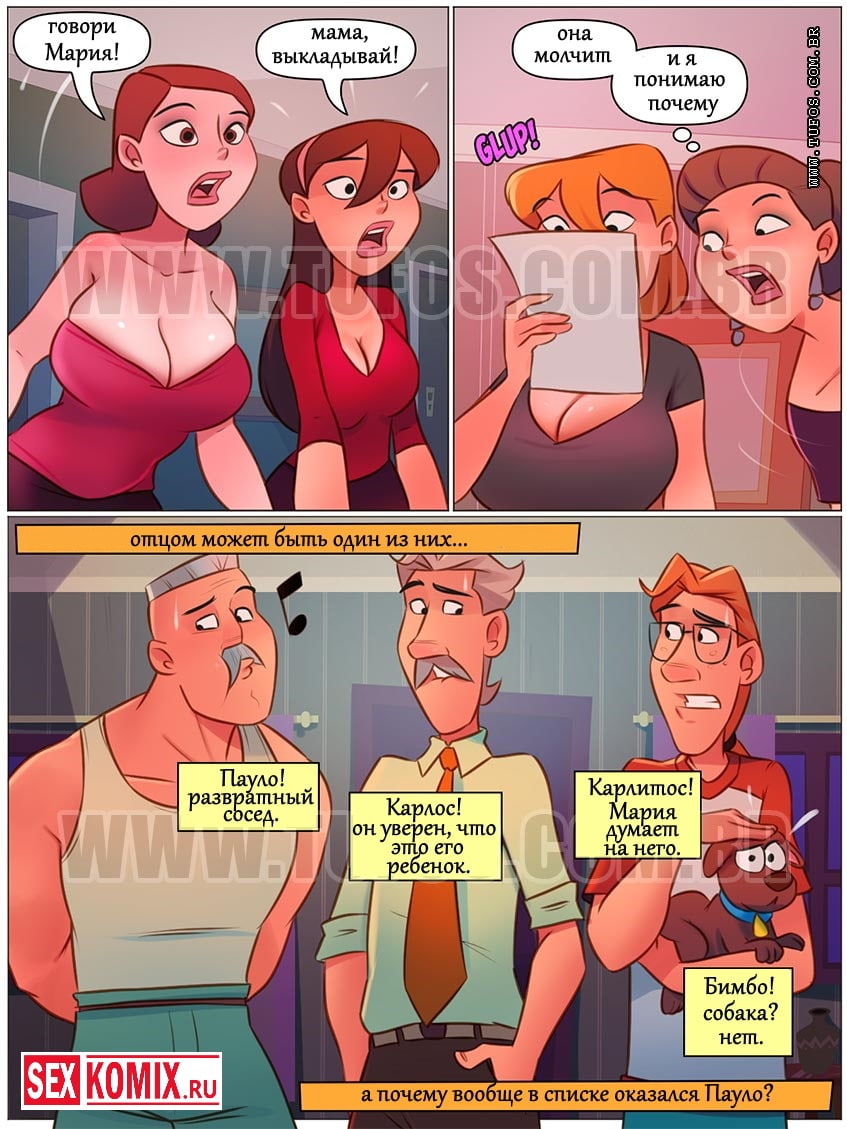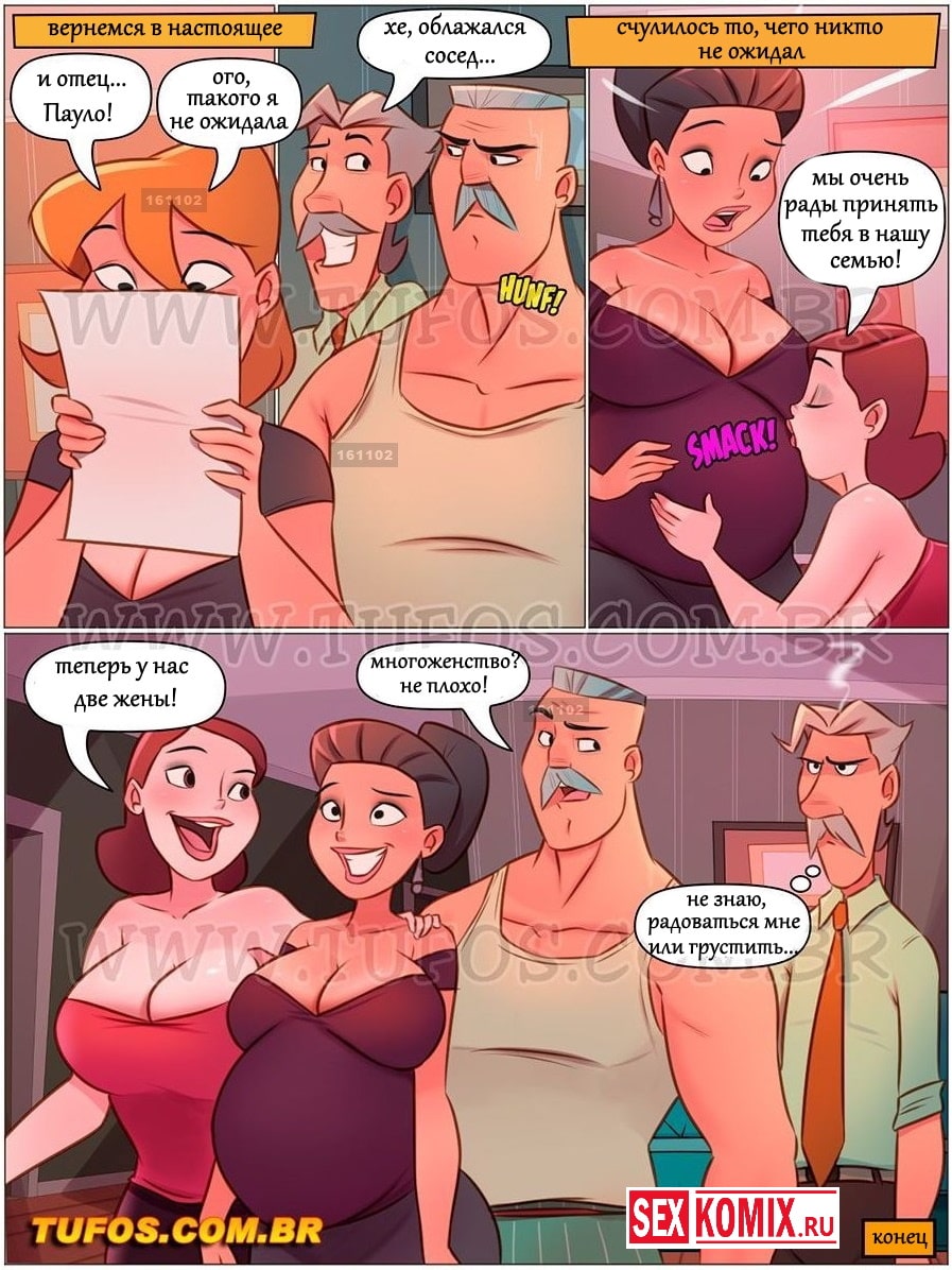 Порно комикс Похотливая семейка. Часть 71. Дорогая, твоя сестра залетела Эпизод 3. Наконец-то получен результат ДНК, который покажет от кого залетела сестра Марии. Но под рассмотрение попал сосед Пауло, но он же не трахался с ней! Или все же да? Немного ранее, когда после бурной ночи милфа курила на улице на неё напал грабитель, но Пауло заступился за неё и пригласил в свой гараж выкурить косяк. По влиянием дыма женщина вспомнила свою молодость и то как она занималась сексом. Они возбудились и занялись сексом, что же из этого вышло, смотрит е в этом порно комиксе.