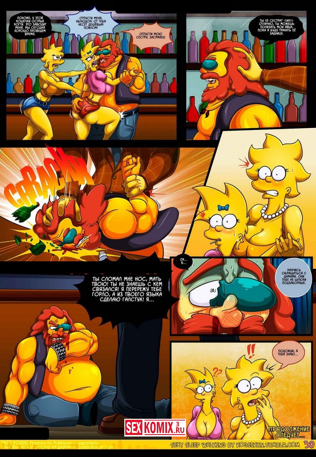 Смотреть порно комикс Симпсоны для взрослых «Сексуальные прогулки во сне». Все начинается с того, что Гомера отправляют в командировку и Мардж остается дома без своего любимого супруга. После долгого воздержания она начинает ходить во сне и просить секса, этим с удовольствием пользуется парень.