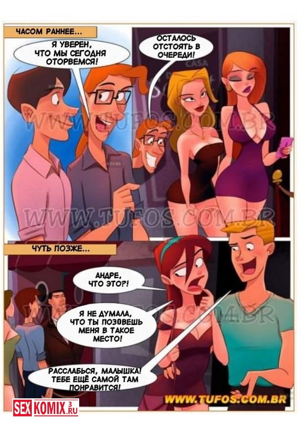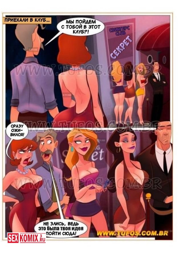 Смотрите секс комикс «Похотливая семейка. Часть 18. Свингерская вечеринка». В этой части порно комикса, наши герои парень, девушка, папа или сексуальная мамка, решили хорошо провести вечер и разошлись по разным заведениям. Но сами того не подозревая, все они все оказались в одном ночном клубе, где с надетыми на лица масками можно было творить любые сексуальные шалости.