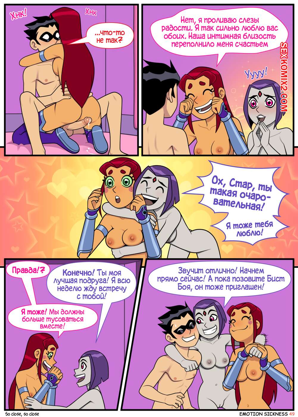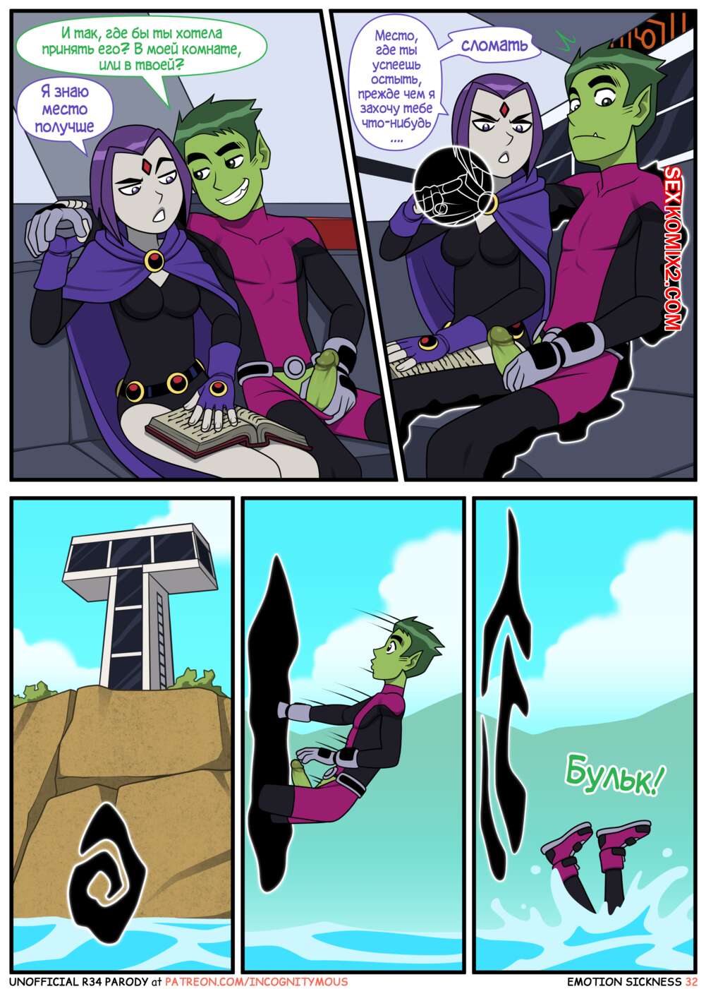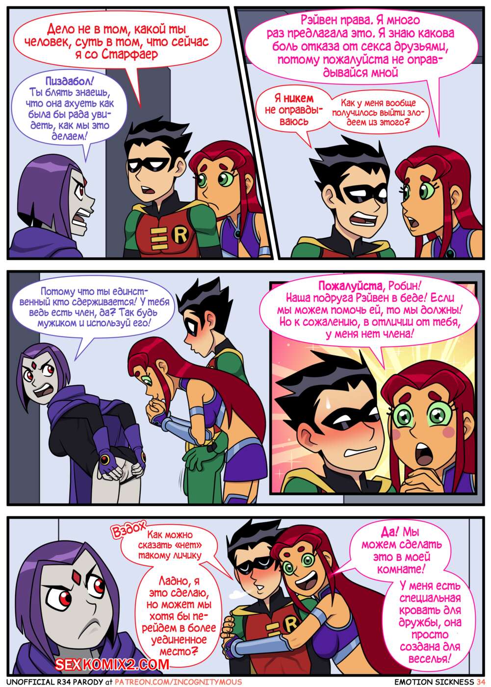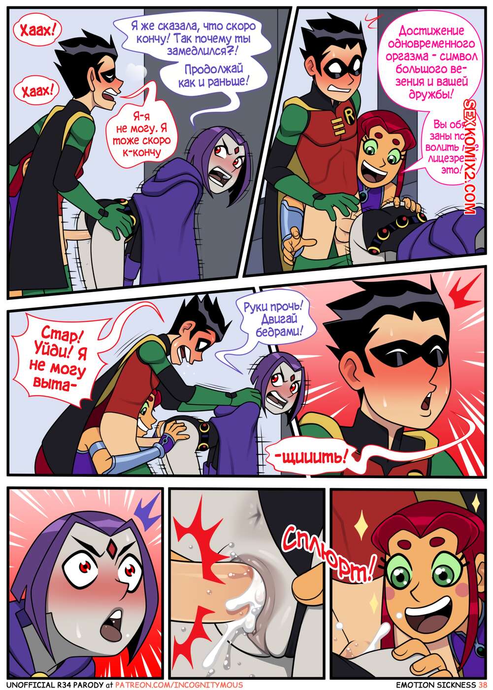 Порно комикс Титаны. Эмоциональная слабость. Часть 1. Emotion sickness. Teen titans. Incognitymous Молодые горячие красотки из команды Титанов были чертовски возбуждены и решили повеселиться со своим дружком. Они разделись перед ним и стали сосать его большой хуй, после чего дали ему себя выебать.