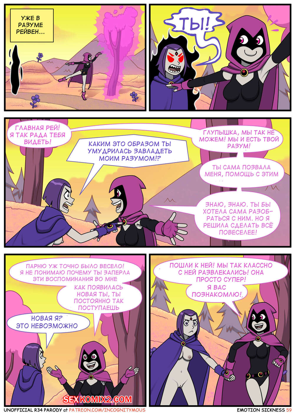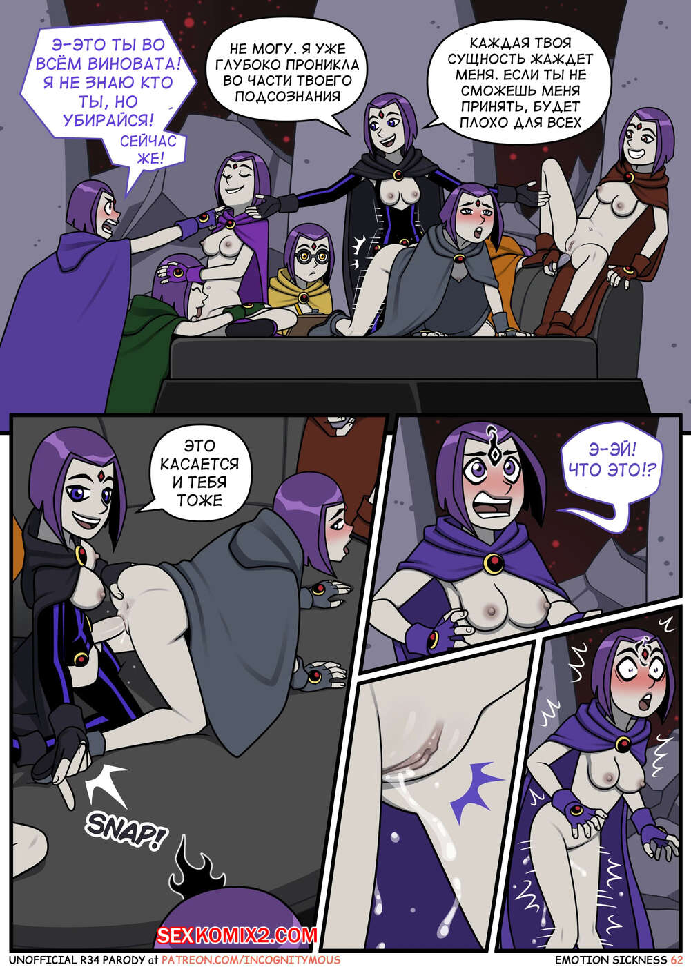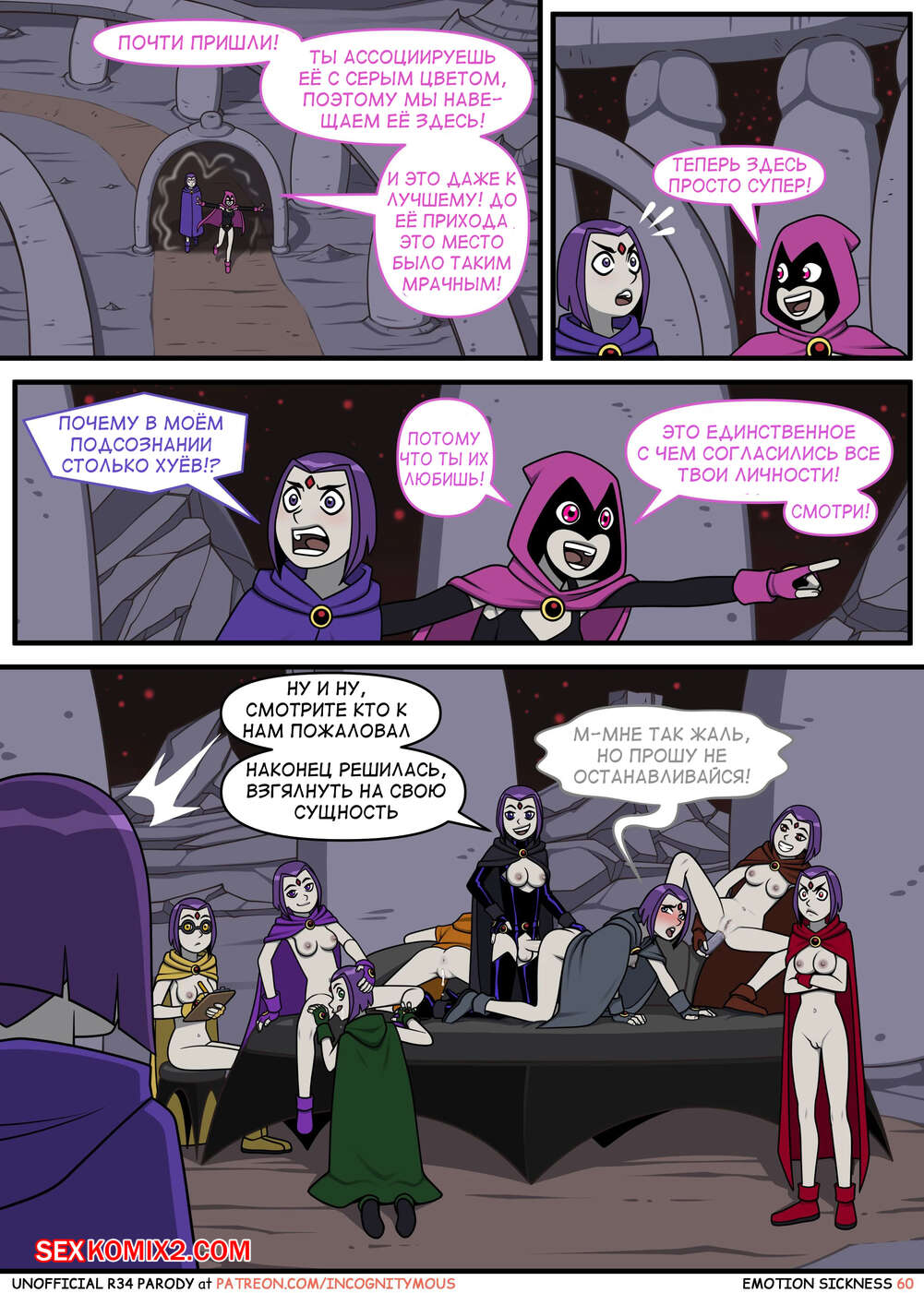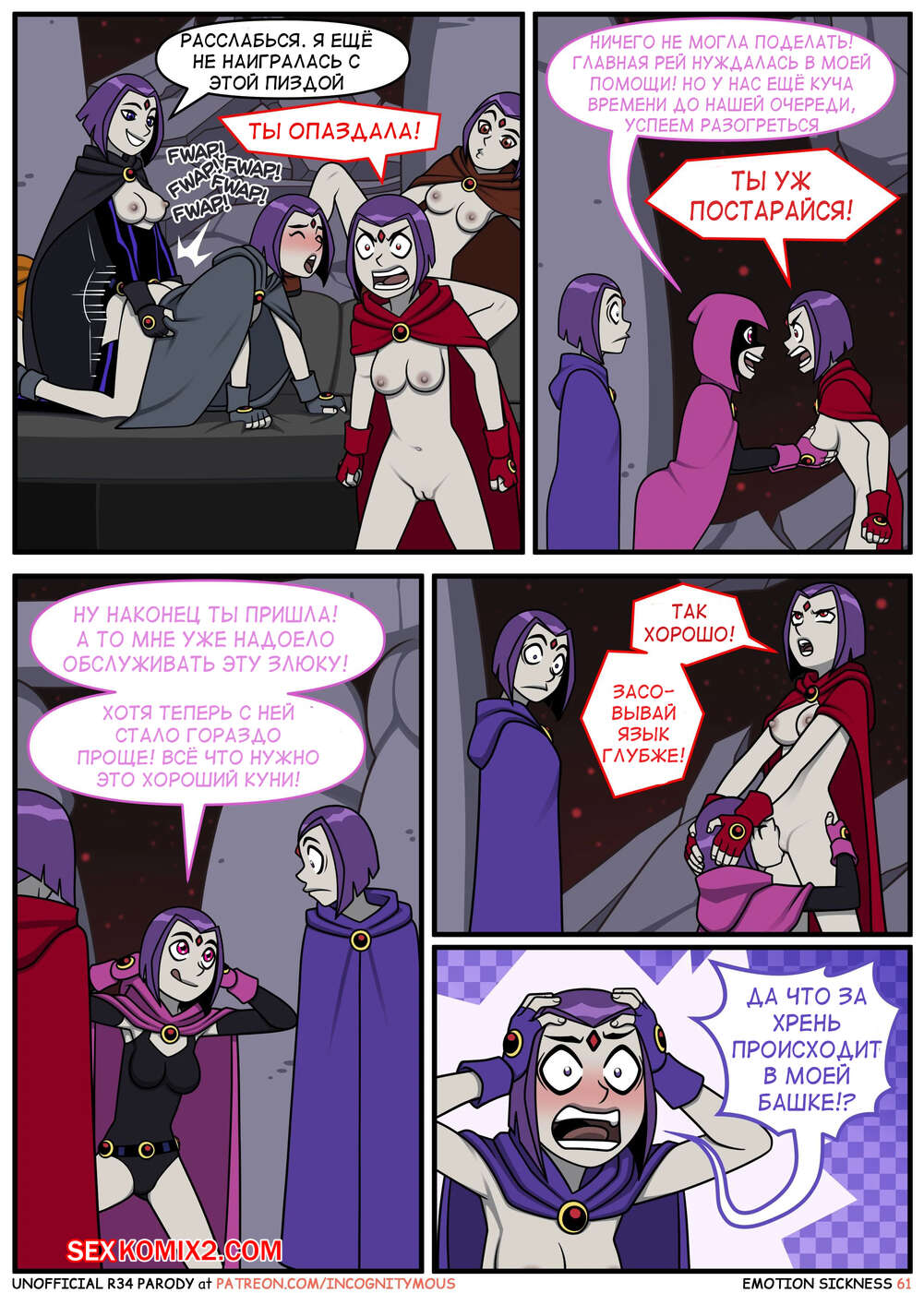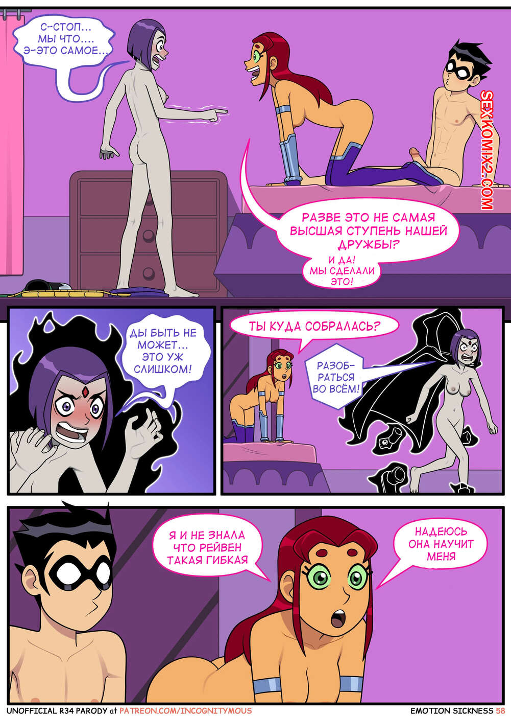 Порно комикс Титаны. Эмоциональная слабость. Часть 2. Emotion sickness. Teen titans. Incognitymous Горячие сисястые красотки Титаны продолжают испытывать огромное возбуждение. Они соблазняют своего дружка и отсасывают у него, после чего дают ему себя хорошенько выебать.