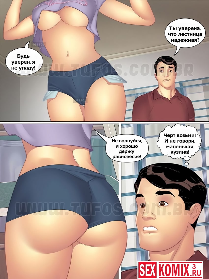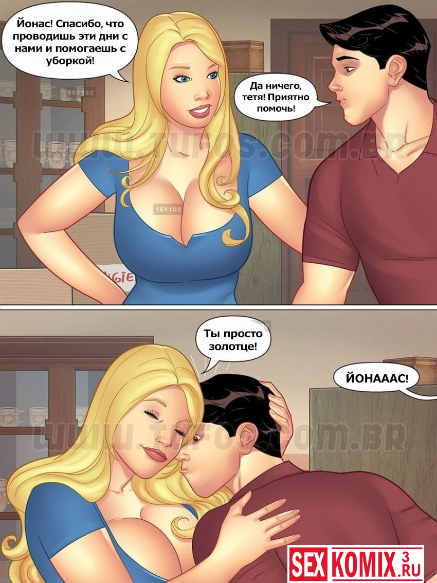 Порно комикс Тетя, кузины и племянник. Часть 1. Суета в день переезда. Подросток парень пришёл к своей тете и двум сексуальным кузинам, чтобы помочь им с переездом. Девушки мыли посуду и складывали всё в коробки, а парень успевал помогать им всем. Еще и успевал наслаждаться красивыми видами их нежных манящих тел. В этой части мы увидим как ему повезло увидеть свою тетю и кузин в новом свете и заставило его член напрячься. А девушки все же очень благодарны ему за помощь и мужское внимание. Посмотрим, что из этого всего получится.
