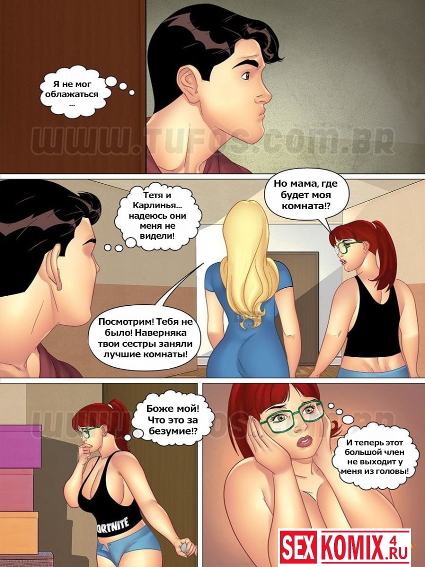 Порно комикс Тетя, кузины и племянник. Часть 1. Суета в день переезда.
