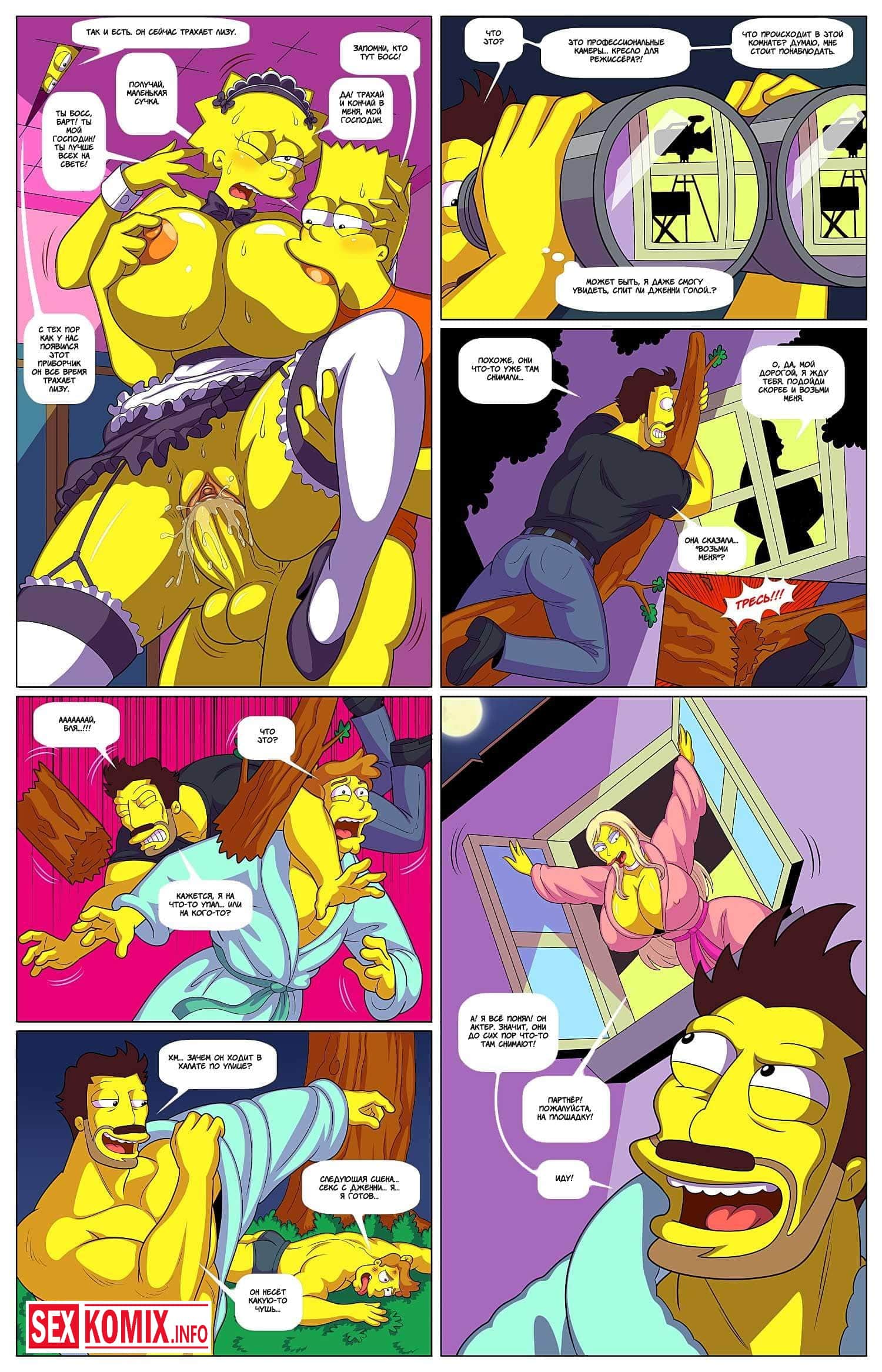 Порно комикс Симпсоны приключения Даррена. Часть 3. Даррену и Барту уже начинает надоедать просто так всех трахать и хочется разнообразия. А в это время по соседству заезжает новая секси девушка соседка, которая оказывается порно звездой. И Даррену в голову приходит отличная идея, снять фильм с её участием. Он представляется порно режиссером и приглашает девушку главной актрисой в своем фильме.