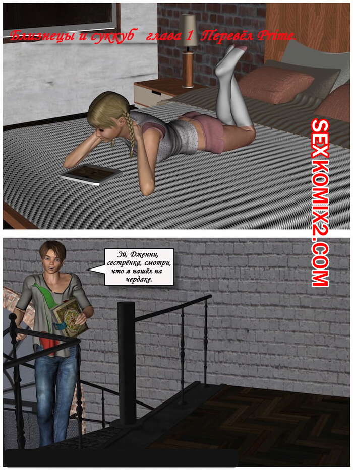 Порно комикс Близнецы и Суккуб. The Twins and The Succubus Парень веселился со своей сестренкой в ее комнате, но к ним неожиданно прибыла девушка суккуб. Она соблазнила подростков, чтобы заняться с ними страстной групповой еблей.
