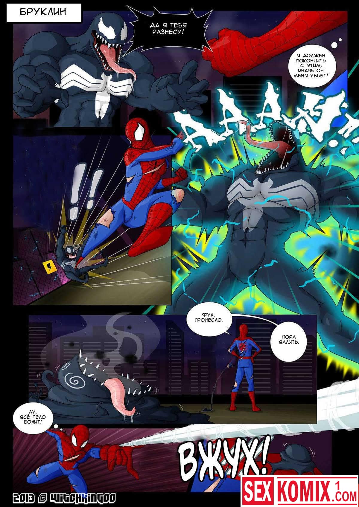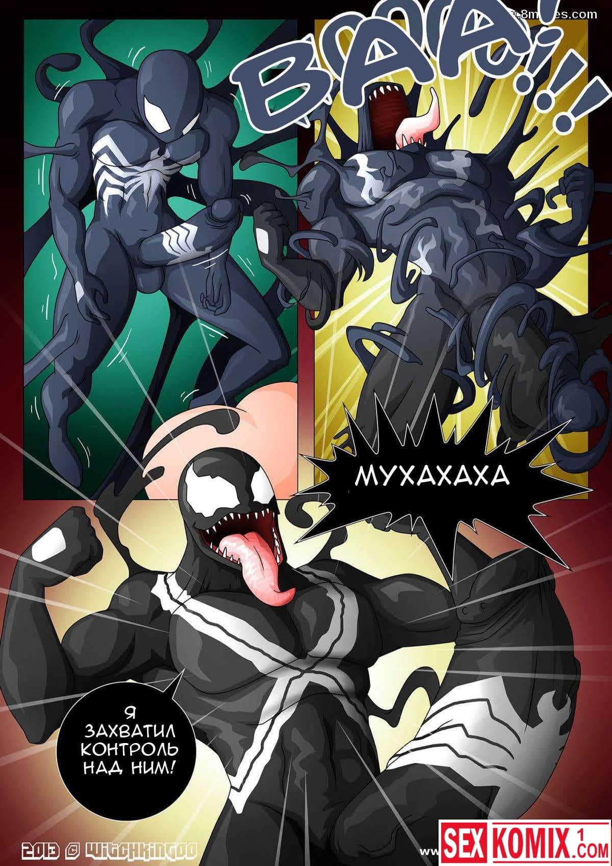 Порно комикс Человек паук. Специальный выпуск. Питер Паркер вступил в схватку с Веномом и победил в ней. После этого он отправился к своей девушке Мери Джейн, и залез в пастель, чтобы занять в ней сексом. Но он не знал, что Веном заразил его. И теперь он тоже стал Веномом рядом со своей девушкой. И сексом с ней занялся не её парень Питер.