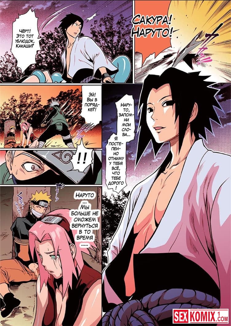 Порно комикс Любовь Наруто. Часть 3. Молодая девушка по имени Сакура прогуливалась по улице вечером и повстречала мастера, который мог управлять змеями. Он приказал им схватить девушку и снять в неё одежду. После этого он достал свой большой член и трахнул красотку. За этим наблюдал Наруто, но сделать ничего не мог. Так как был связан.