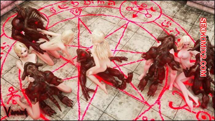 Порно комикс Каменные Демоны Горячие сисястые красотки оказались закрыты в одной комнате с ужасными монстрами с большими хуями. Они сперва дали сучкам отсосать у них, после чего хорошенько их выебали.