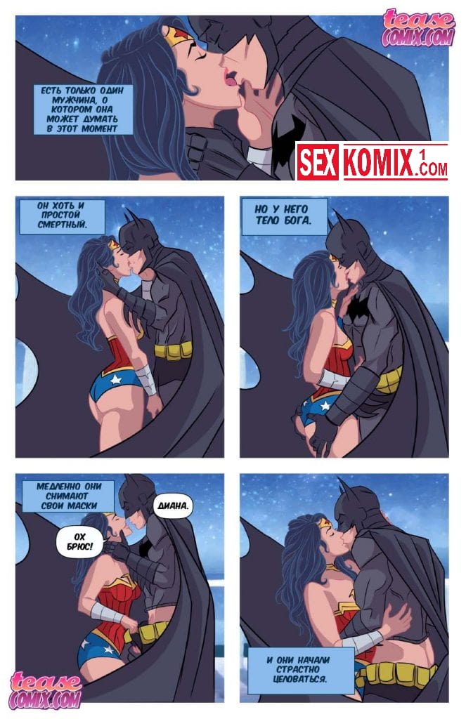 Порно комикс Мне нужен Бэтмен. Чудо женщина после долгих битв против зла отдыхает и мечтает о мире во всем мире. Они пытается расслабиться и начинает мастурбировать. Женщина представляет единственного мужчину которого она любит и может доверять только ему. Это Бетмен, он является в её фантазии и они занимаются страстным сексом.