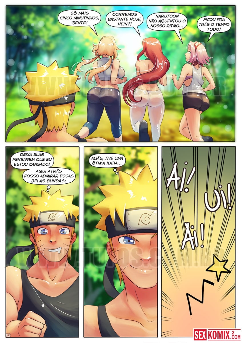 Порно комикс Наруто. Часть 5. Идеальный трюк ниндзя. Португальский. На утренней пробежке Наруто отстает от женщин и едва успевает за ними, но они и не подозревают, что Наруто делает это умышленно, чтобы любоваться их задницами. Но позже Наруто придумал нечто еще более хитрое, что позволит ему не только любоваться женскими задницами, но и трахать их! Что же он придумал? Прочтите сами!