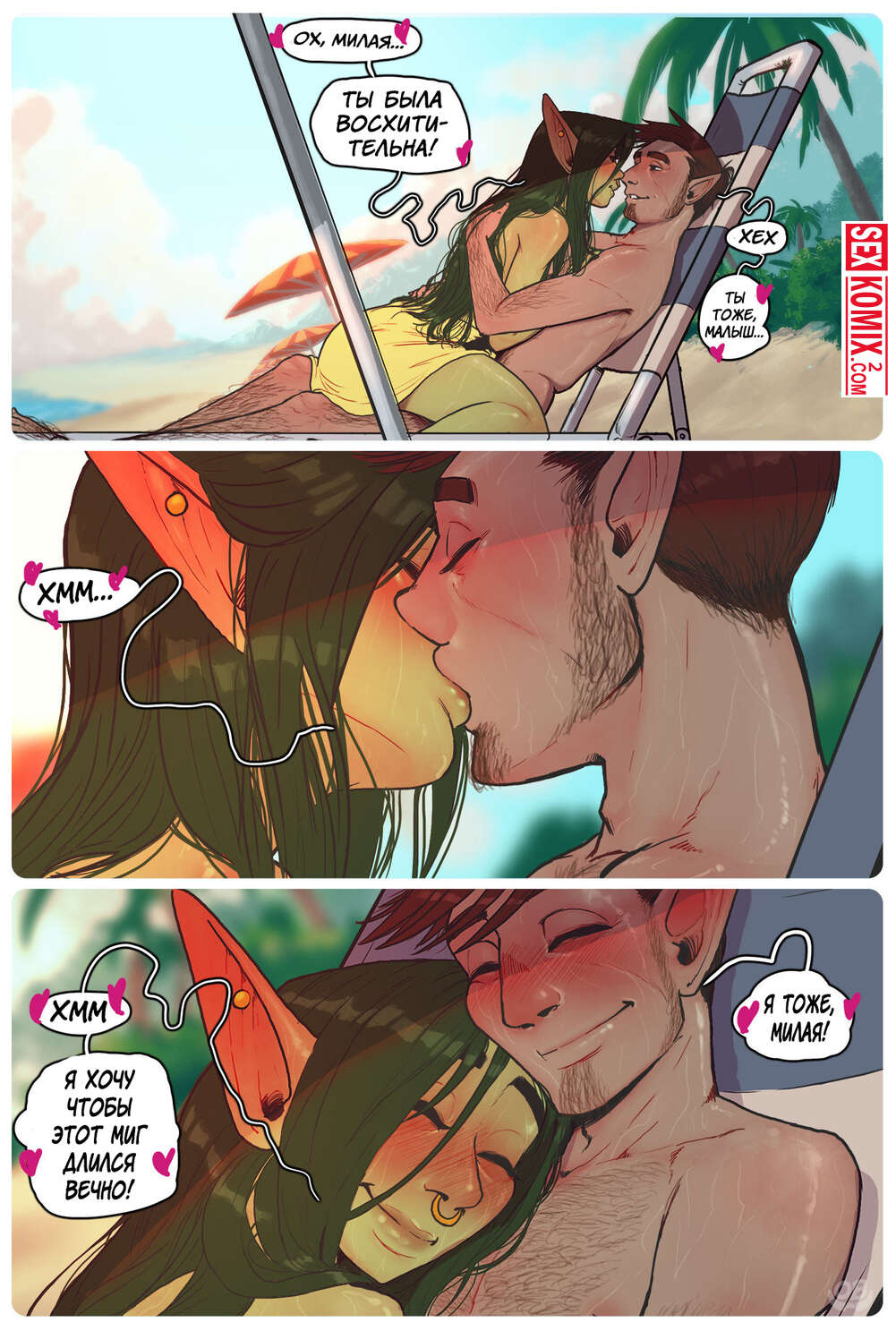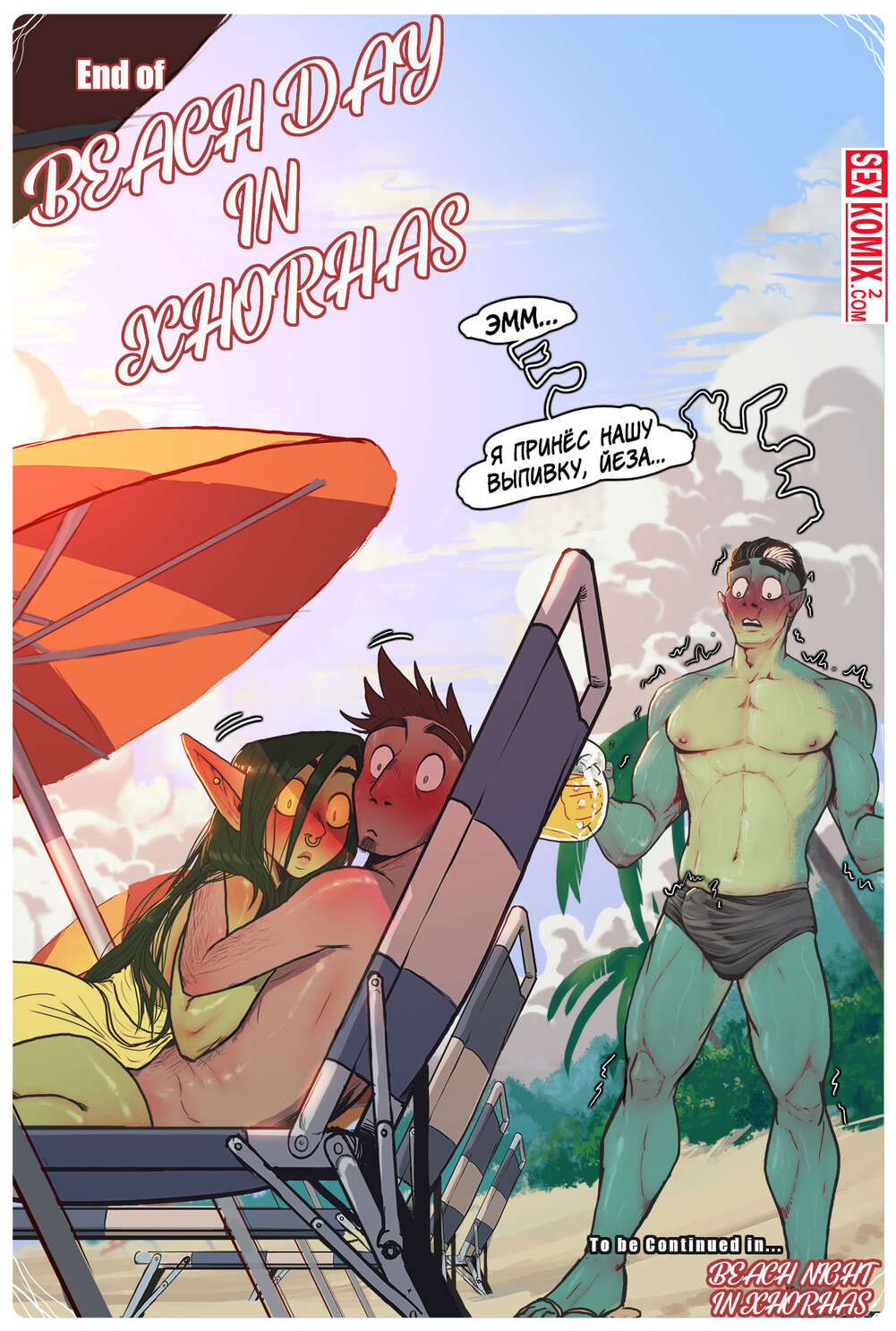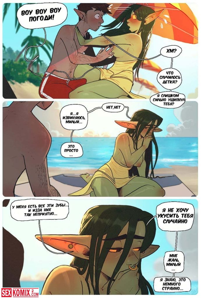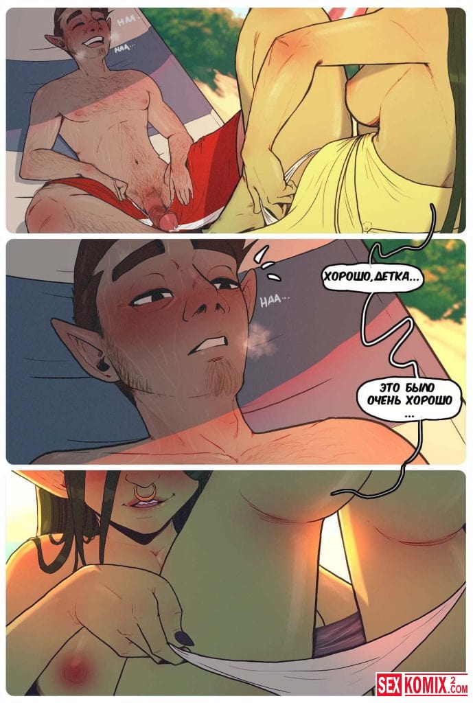 Порно комиксы Пляжный день в Ксорнаксе. Жаркий летний день, экзотическая красотка с большой грудью и миленьким личиком решила прогуляться по пляжу и встретила своего знакомого. Она начала приставать к нему и нарвалась на стоящий член. Увидев его девушка истекла слюной от желания взять член в рот.