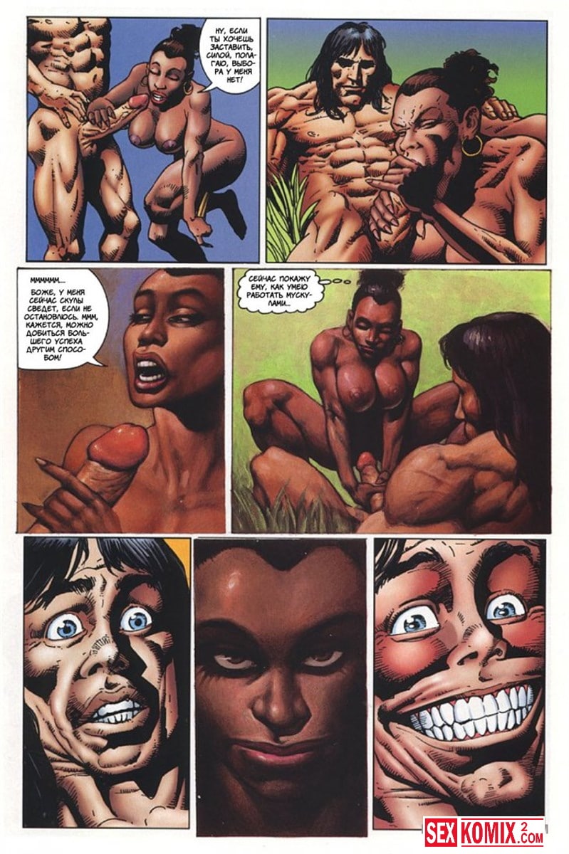 Эротический комикс Латиша и затерянный мир. Пролетая над островом пассажирский подвергся нападению птеродактиля и упал на это остров. В живых остались только девушки. После горячего секса с местными мужчинами их сделали главными женщинами племени.