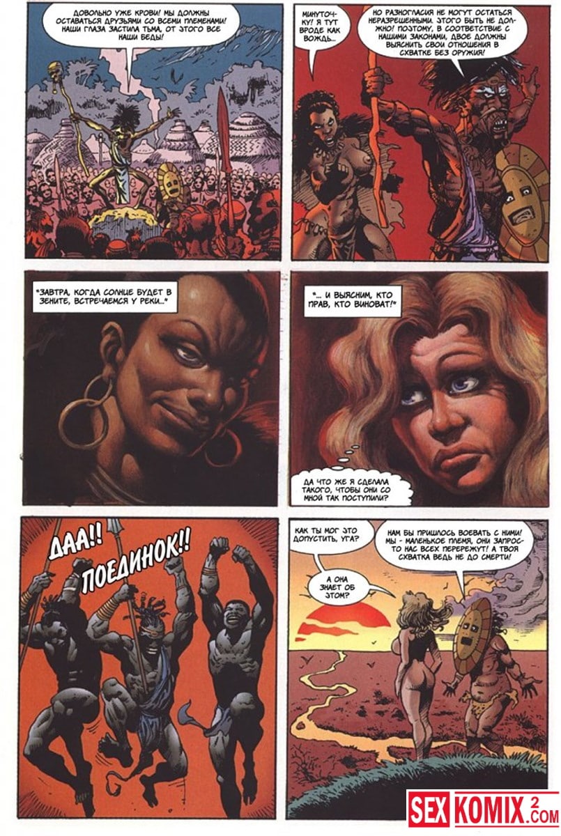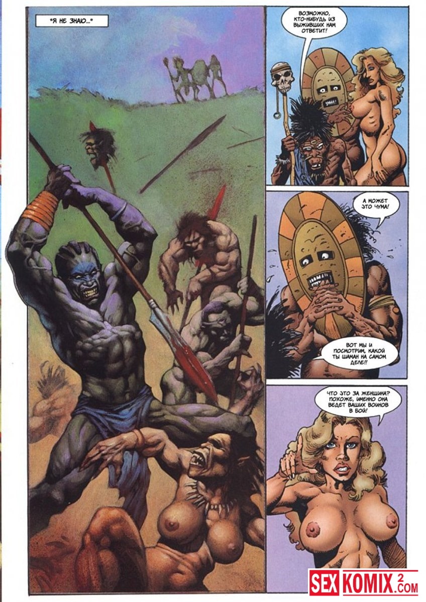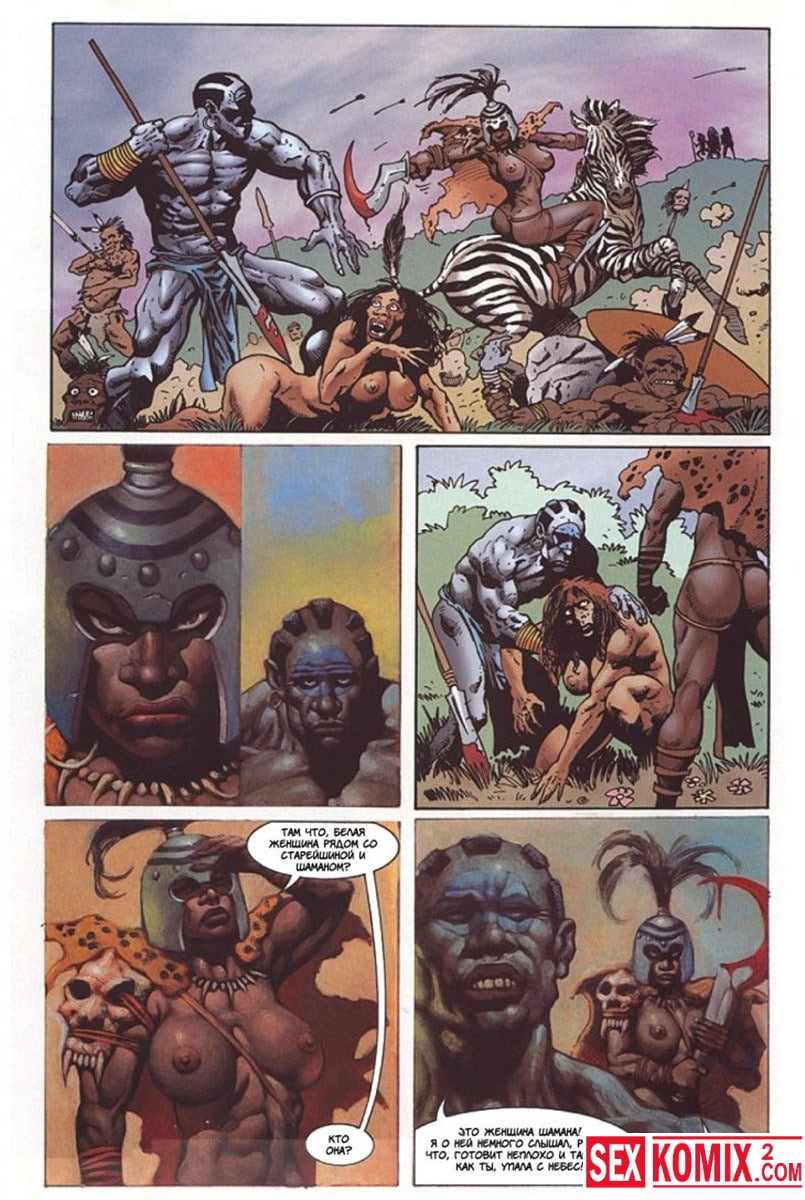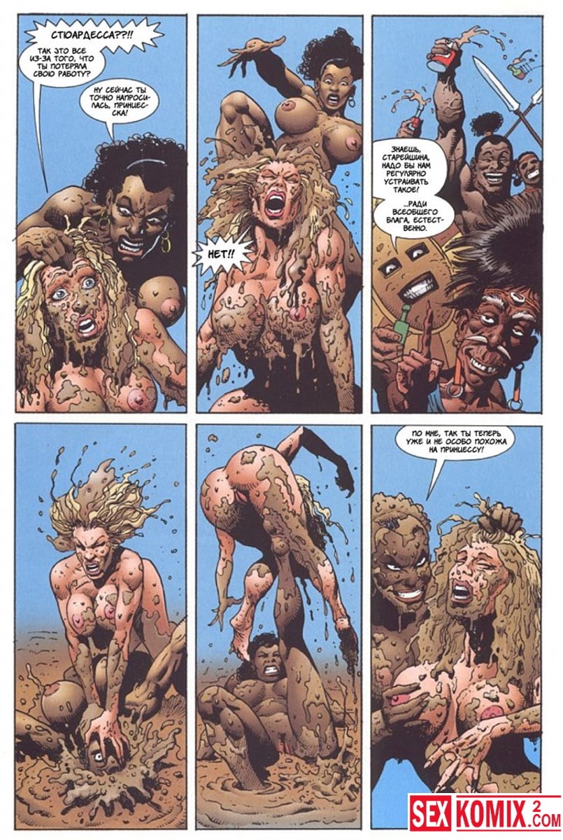 Порно комикс Латиша и затерянный мир. Часть 2. Приключение двух девушек на фантастическом острове продолжаются. Блондинка встретила чернокожую девушку с того же самолета, но она уже была вождем племени.