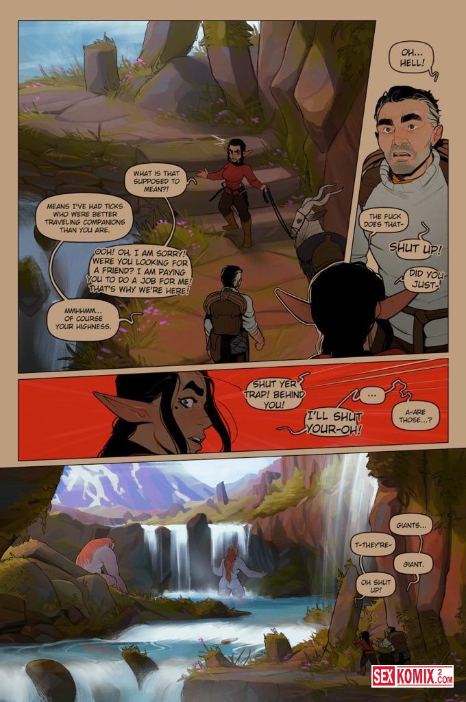 Порно комикс Альфи. Часть 9.5. Английский. Много всего интересного эльфийка небольшого роста и её спутник повидали. Но это просто нечто, они увидели голую женщину циклопа, а самое интересное, что и парня циклопа. Они занялись горячим сексом на заброшенном озере.