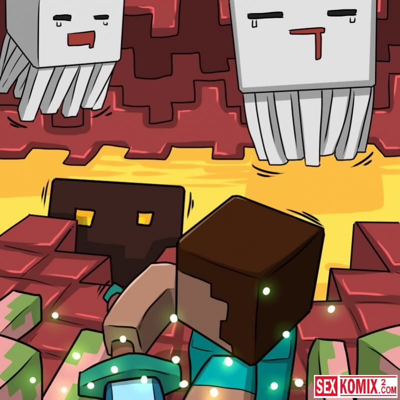 Порно комикс Minecraft. Часть 3. Девушка с большими сиськами попала в мир Майнкрафта и все персонажи начали к ней приставать и трахать красотку. Но ей повезло, появился герой, который спас брюнетку и освободил её из игры, вернул девушку домой.