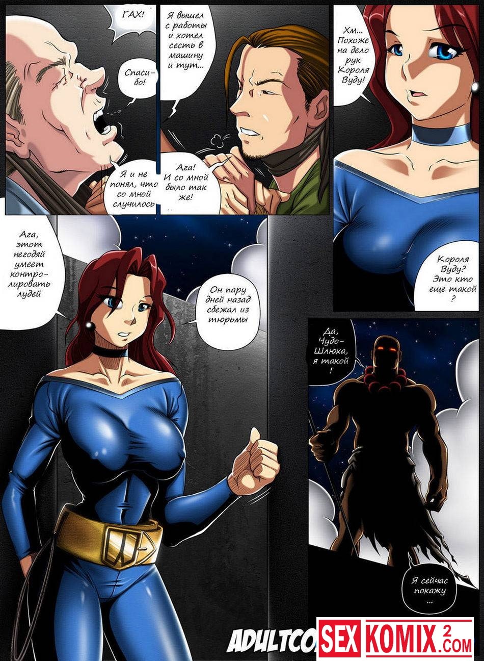 Порно комикс Чудо-баба против Короля Вуду. Она путешествовала по городу каждую ночь и защищала его от преступников. Но однажды она попалась на глаза очень сильному противнику. Король Вуду установил контроль над ней, и теперь она полностью в его власти.