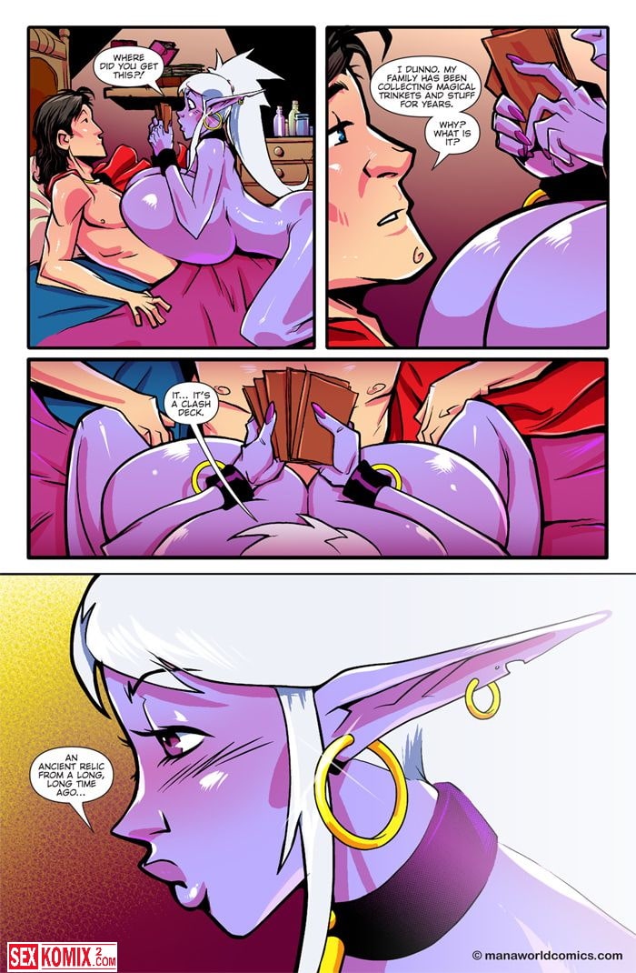 Порно комикс Мир Маны. Часть 6. Откровения. Английский. Сексуальная эльфийка после бурной ночи с капитаном корабля проснулась утром. Вечером он рассказал её о своих приключениях и девушка решила поделиться своей жизнью. Она поведала о своей прошлой жизни в другом измерении.