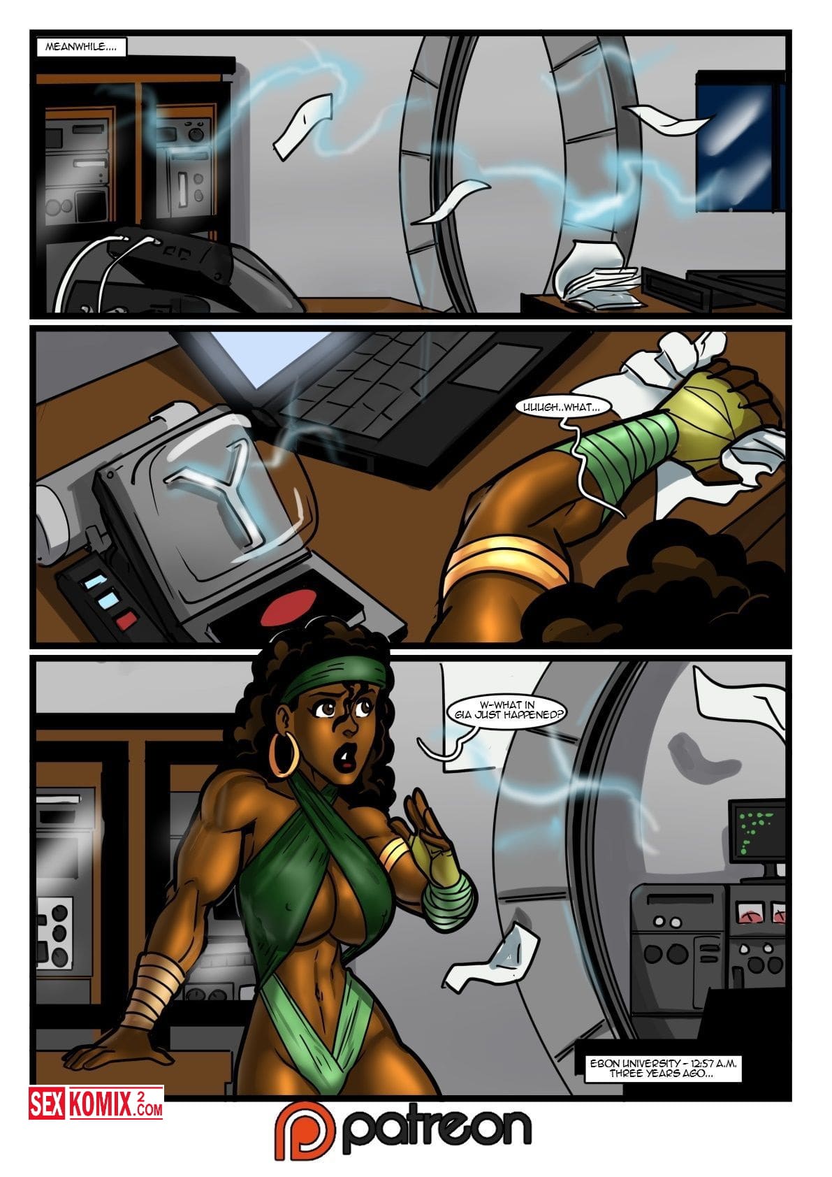 Порно комикс Геройские сказки. Войти в безумную ведьму. Английский. Чернокожая колдунью устроили обряд в лаборатории своего знакомого ученого и мужчина сам того не хотел, но оказался втянут в её колдовство. Он оказался в другом измерении и эта чернокожая красотка захотела секса с ним.