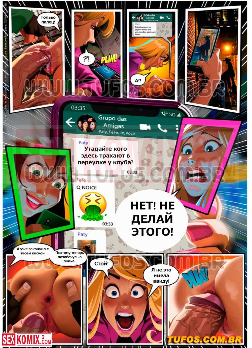 Порно комикс Семейка богатеев. Часть 8. Месть нищего. Блондинка забрела в темный переулок и случайно уронила телефон в мусорный бак. Когда девушка наклонилась за ним, к ней пристроился проходящий мимо мужчина, ведь она была в короткой юбке и без трусов. Он смочил своим языком её анальное отверстие а потом засунул туда член. Пока парочка трахалась в анал у них появилась наблюдательница.