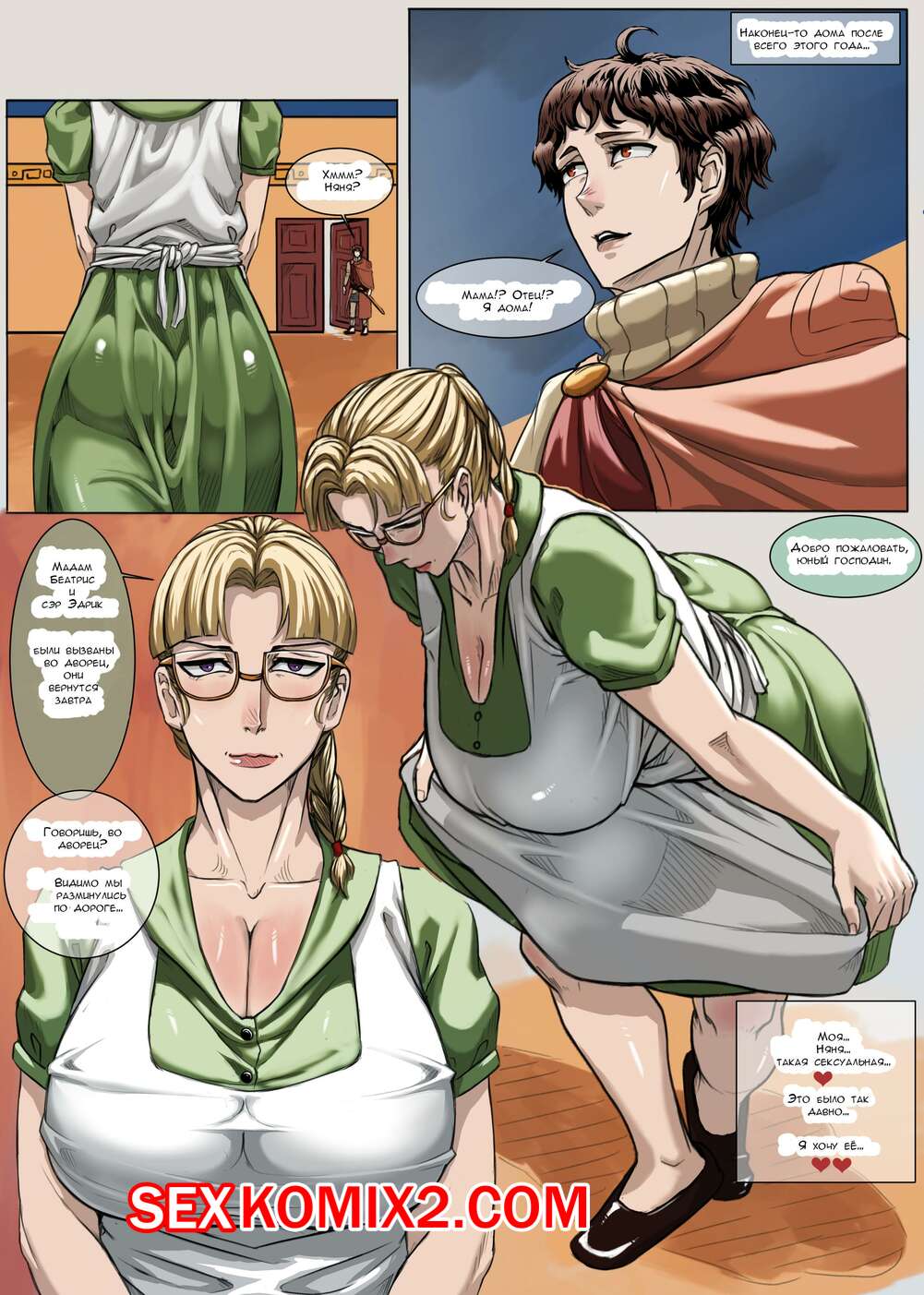 Порно комикс Воссоединение с прекрасной служанкой Парень вернулся домой после долго отсутствия и встретил там свою служанку. Они решили вместе как следует повеселиться и красотка стала сосать его большой хуй, после чего он ее хорошенько выебал.