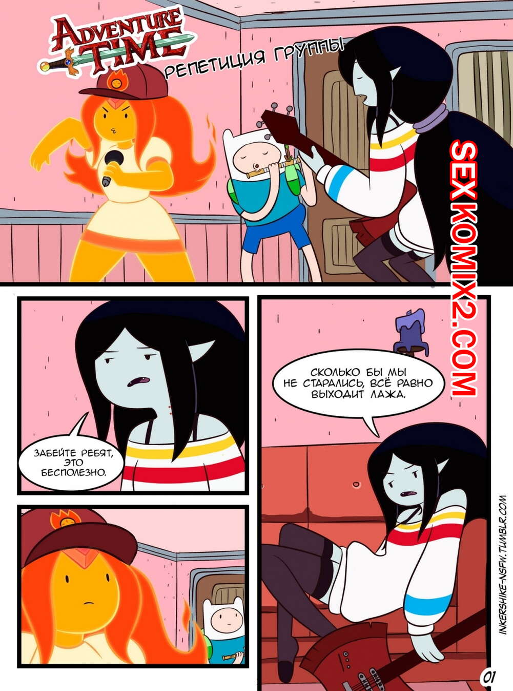 Порно комикс Время приключений. Репетиция группы. Adventure time. Practice With The Band Горячие сисястые красотки были очень возбуждены и решили повеселиться со своим дружком. Они разделись перед ним и стали сосать его большой хуй, после чего дали ему себя выебать.
