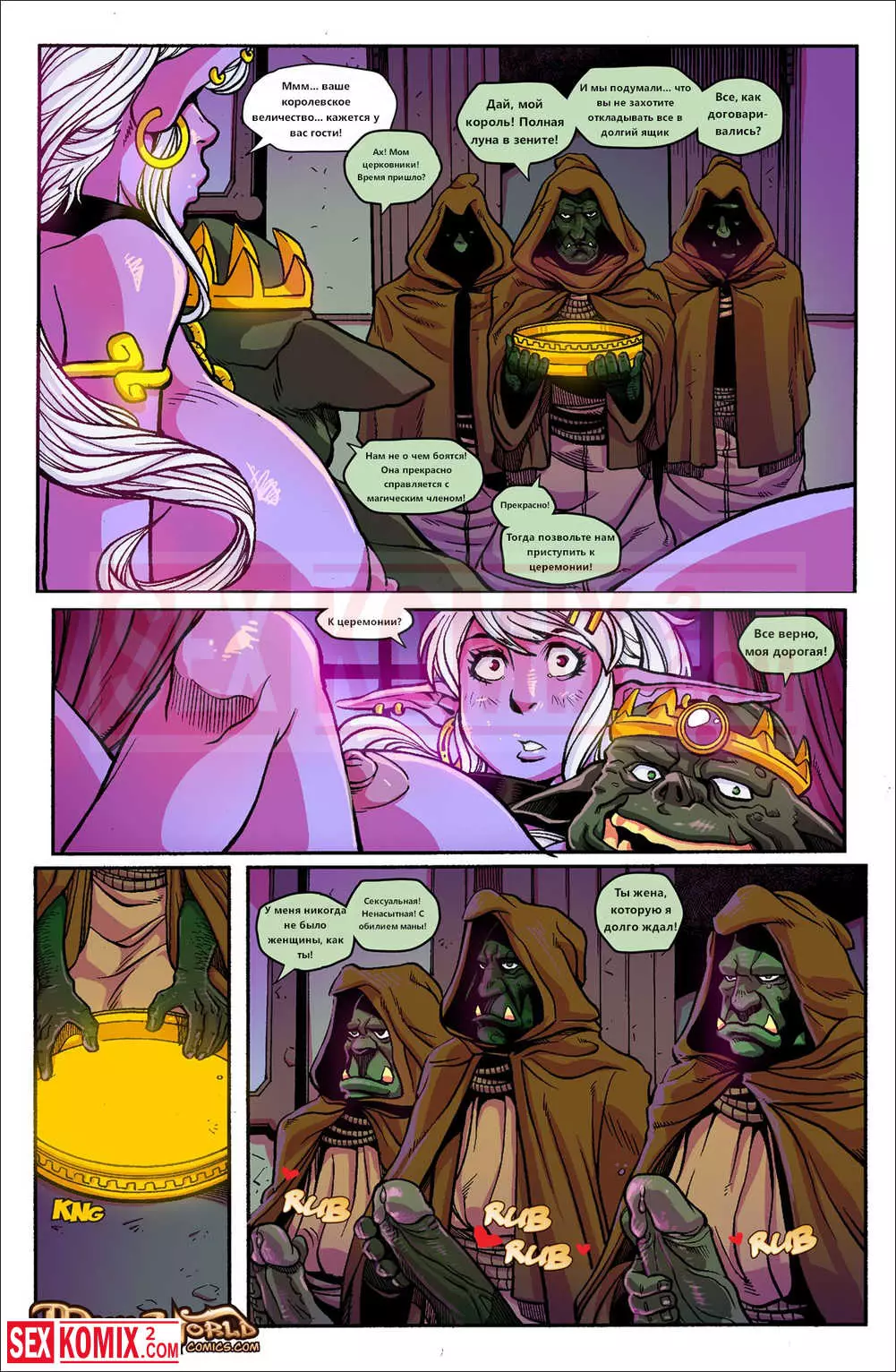 Порно комикс Mana World. Часть 18. В зеленом. Главную героиню горячую светлую эльфийку отдали королю огров, для сексуальных утех. И она ему очень понравилась. Король захотел жениться на красотку и велел приготовить для неё свадебное платье.