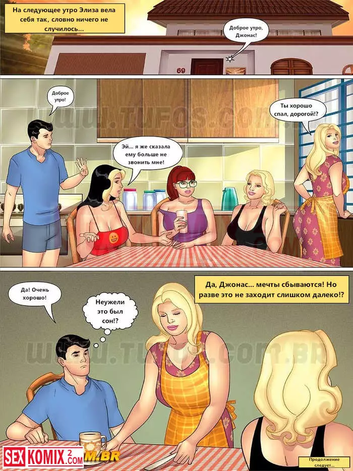 Порно комикс Тетя, кузины и племянник. Часть 2.
