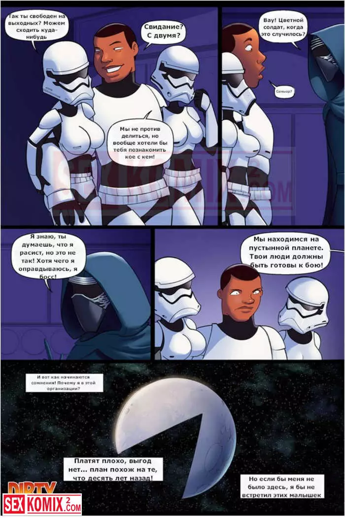Порно комикс Звездные войны. Пробуждение члена. Жизнь штурмовиков такая же как и остальных людей, они хотят заниматься сексом и делают это в свободное от войны время.