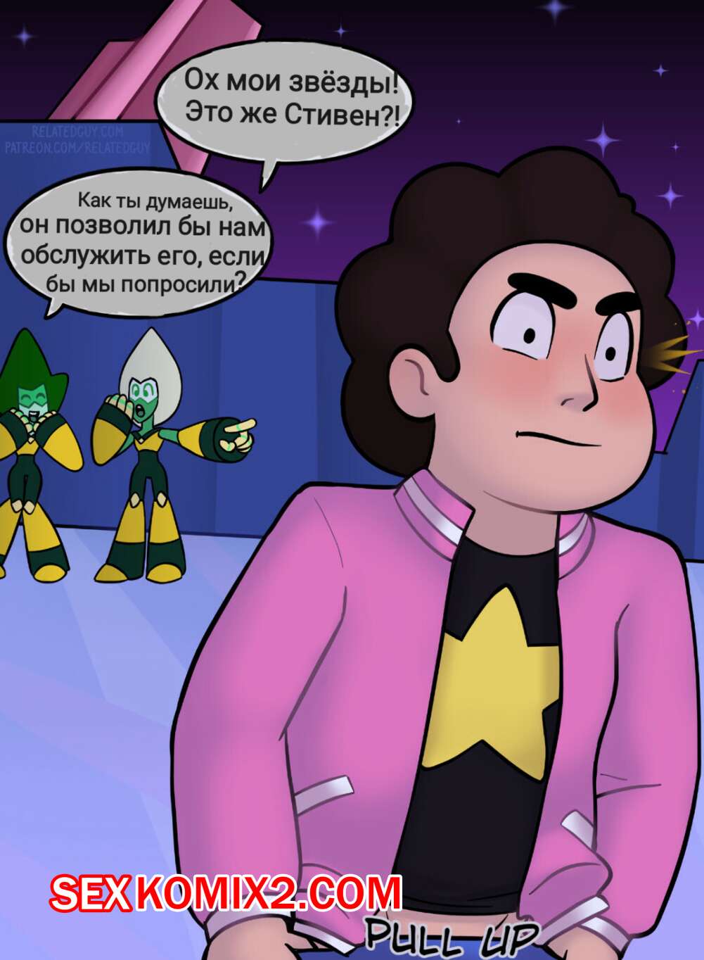 Порно комикс Сервис для Стивена Горячие сисястые красотки увидели Стивена и решили с ним повеселиться. Они разделись перед ним и дали ему себя хорошенько выебать, после чего он заполнил их пизденки спермой.