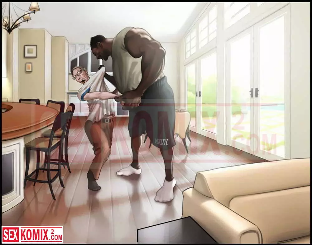 Порно комикс Победа Аманды путем запугивания. Вернувшись с войны чернокожий парень приезжает к своему белому другу. Он увидел его горячую жены и решает трахнуть её. Запугивает своего друга и он разрешает трахать его блондинку жену как он хочет.