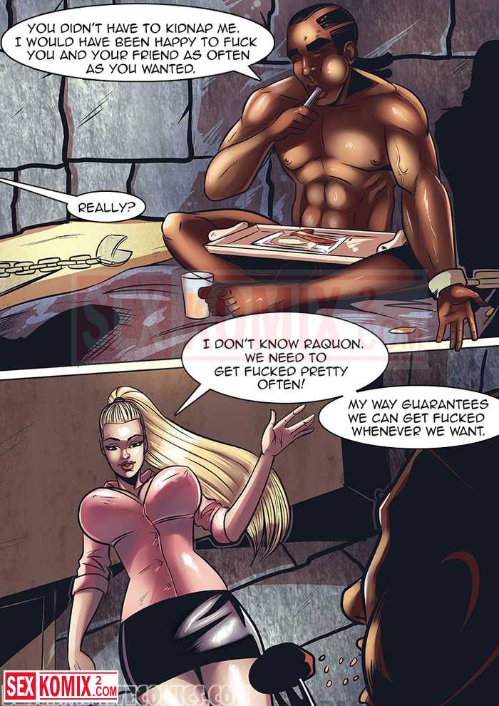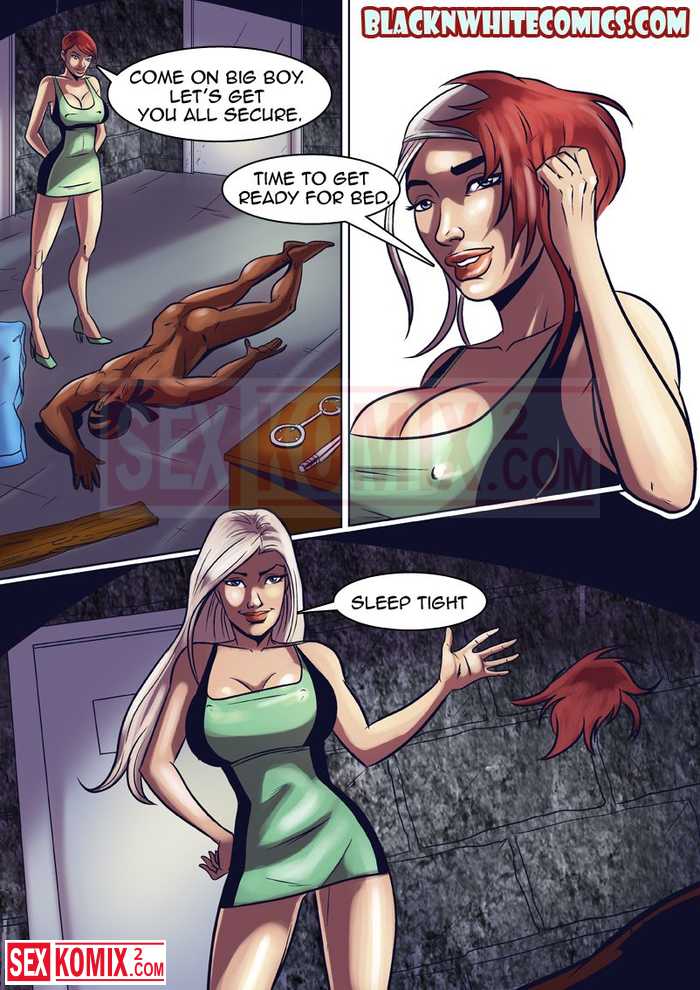Порно комикс Пропавший. Часть 2. Английский. Развратные девушки снова похищают чернокожего парня и занимаются с ним горячим сексом в своём подвале. Парню нравится такое заточение.