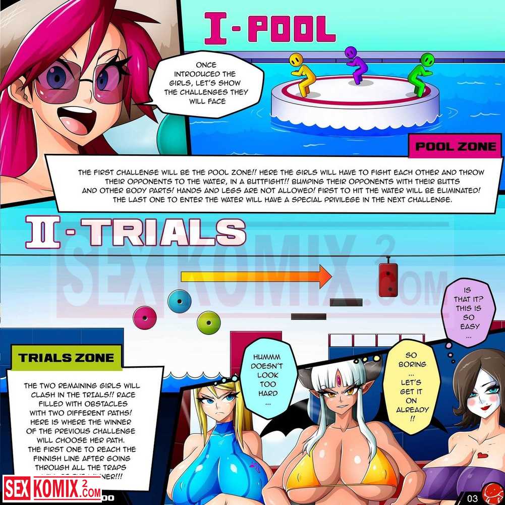 Порно комикс Игры в бассейне. Английский. Это самое лучшее шоу на телевидении, девушки бояться в купальниках в воде. Потом начинают раздеваться и заниматься сексом.