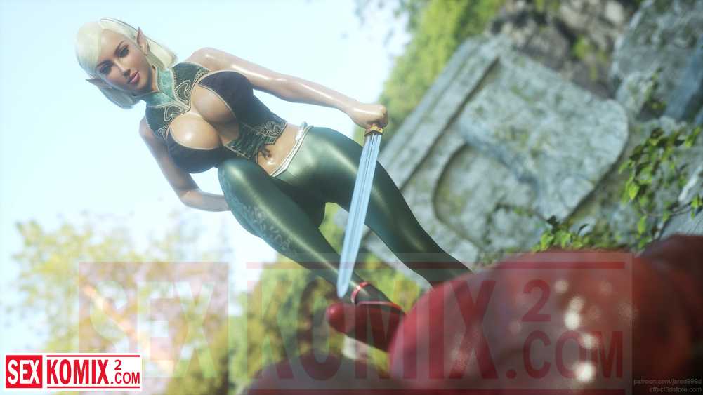 Порно комикс 3д Месть Дженны. Эльфийка с большими сиськами поймала темного эльфа и решила с ним позабавиться. Она воспользовалась его большим членом.