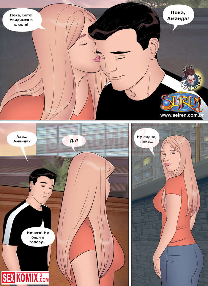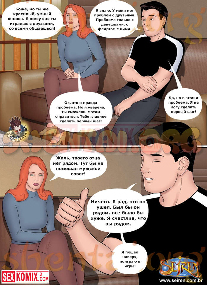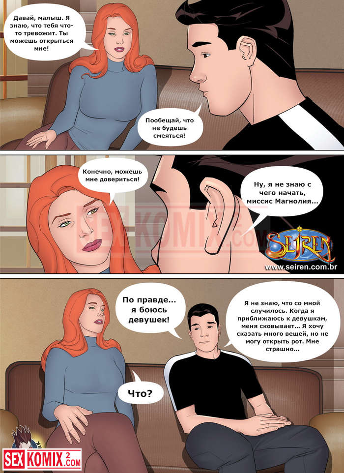 Порно комикс Первый шаг. Женщина увидела своего племянника с девушкой и позже решила поговорить об этом. Она предложила свою помощь в изучении женского тела перед следующим свиданием.