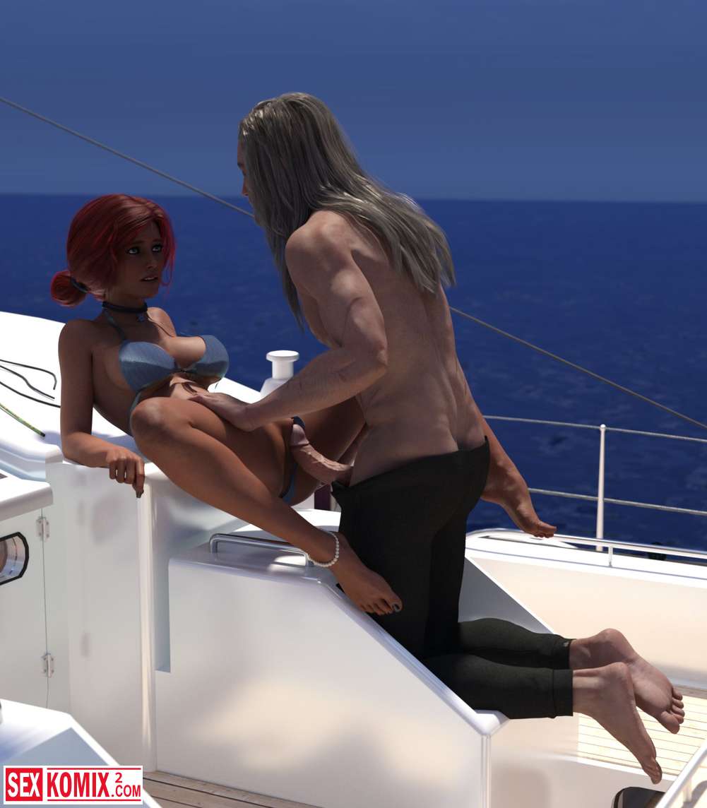 Порно комикс Лето Трис. Ведьмак. Сногсшибательная рыжеволосая девушка отдыхала вместе со своим парнем на лодке. И они решили повеселиться.