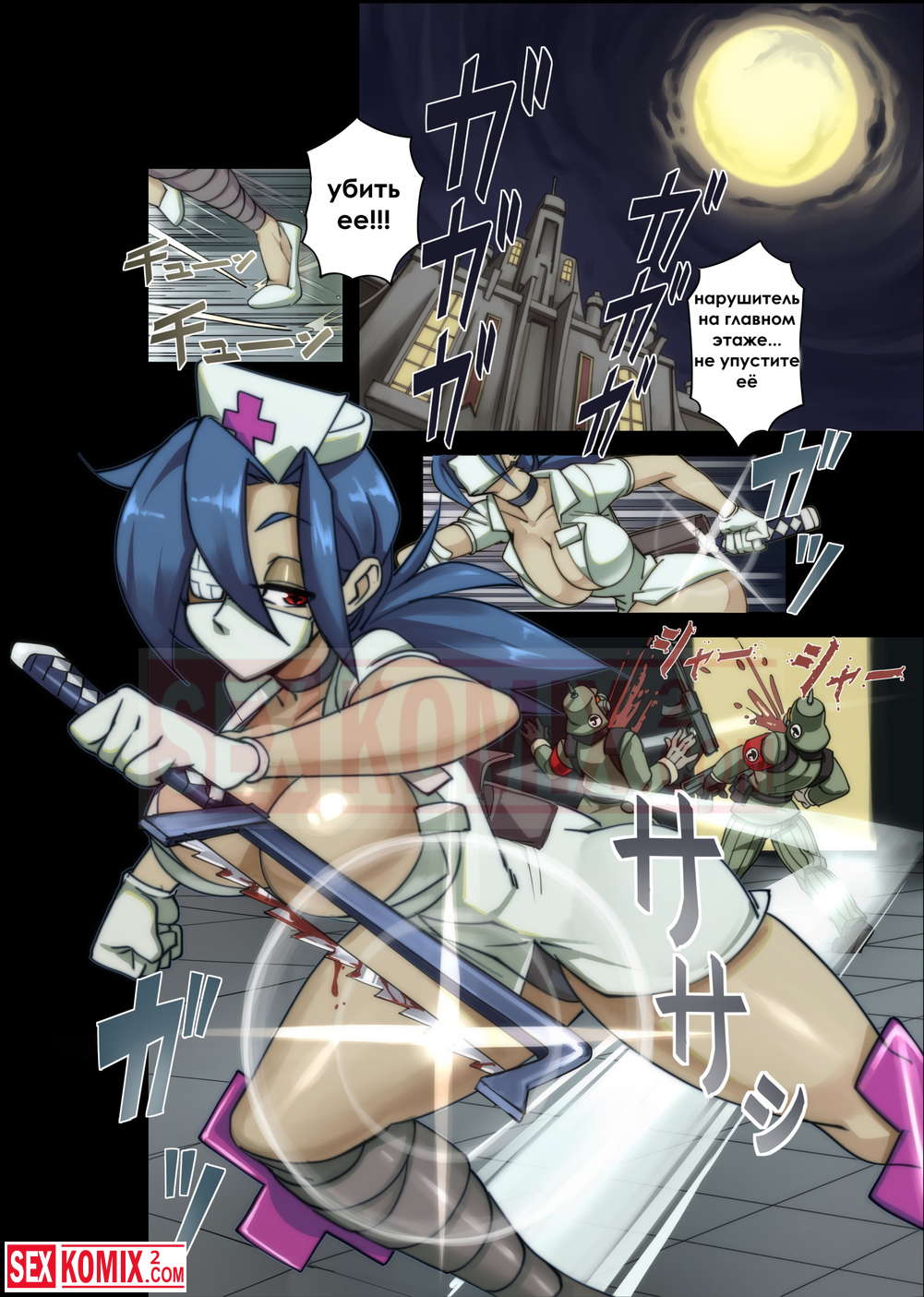 Порно комикс Время Для Вашего Физического Осмотра. Skullgirls. Две девушки встретились в равной схватке но в бой вмешался огромный парень с большим членом и начал трахать обеих.