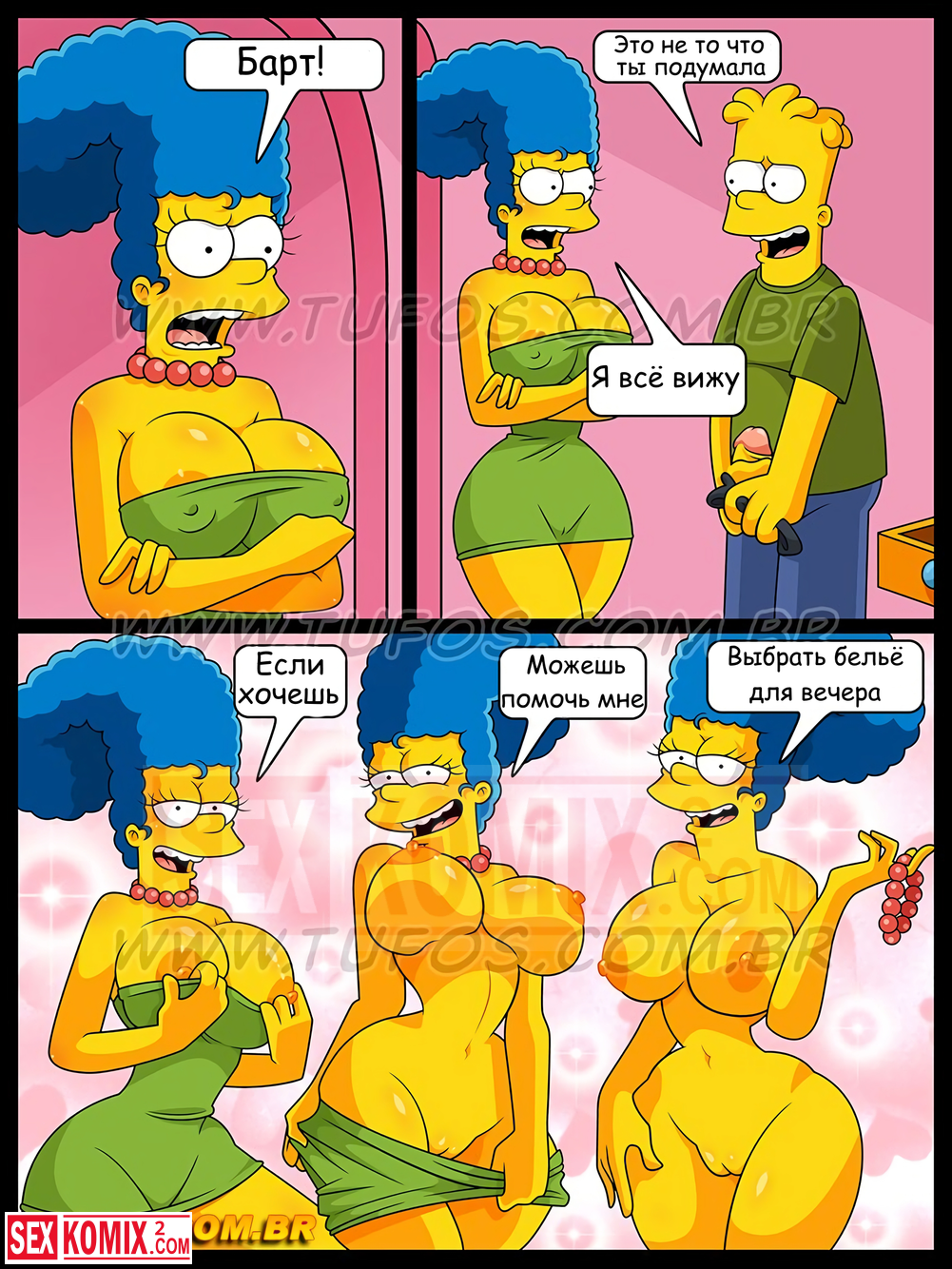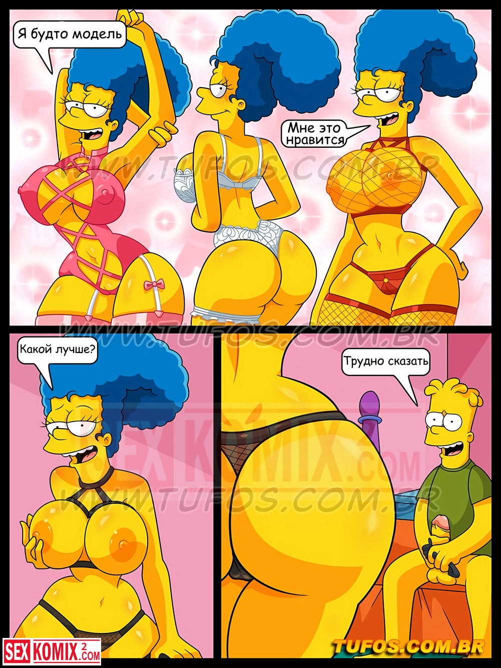 Порно комикс Симпсоны. Часть 20. Парад трусиков. Женщина увидела, что парень мастурбирует перед монитором компьютера и решила ему помочь. Что бы возбудить его она показывала нижнее белье.
