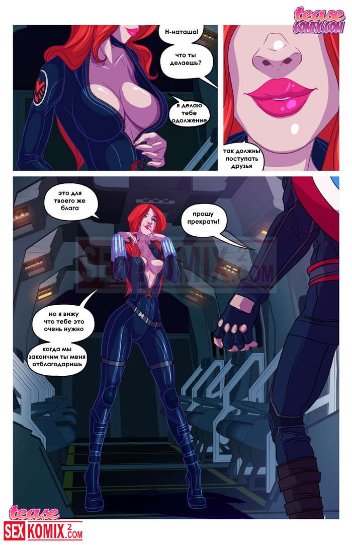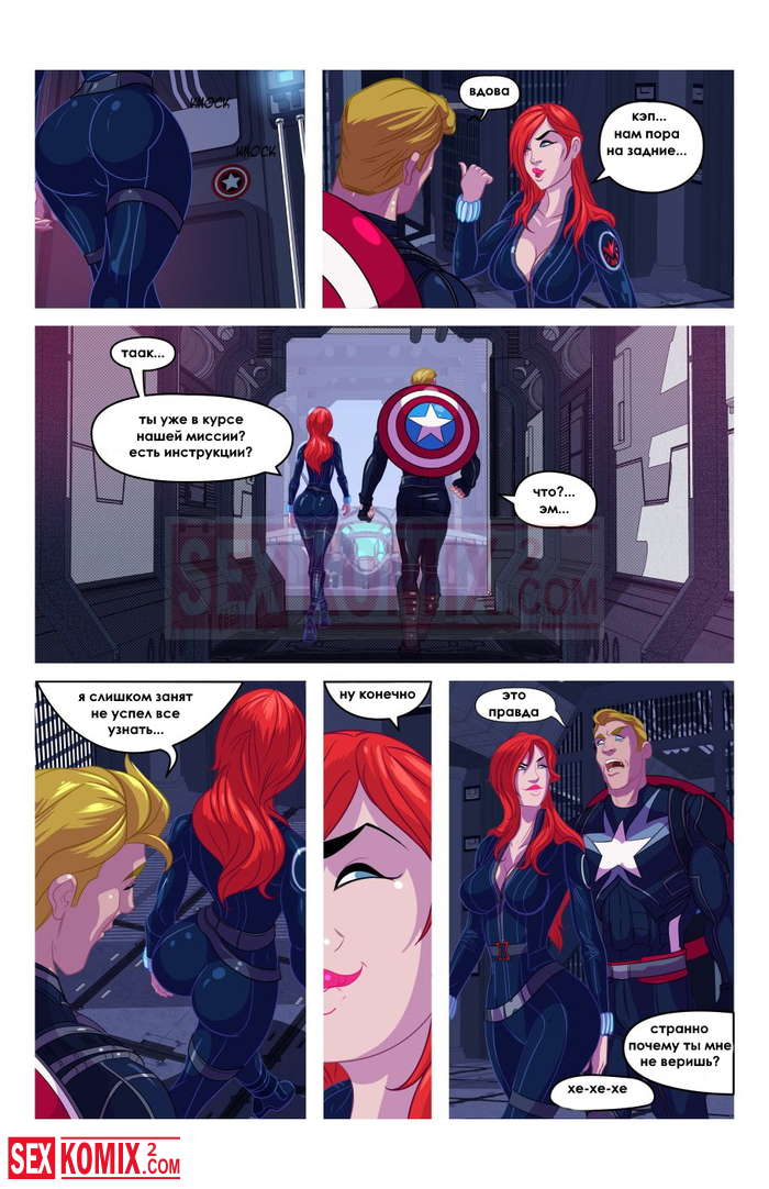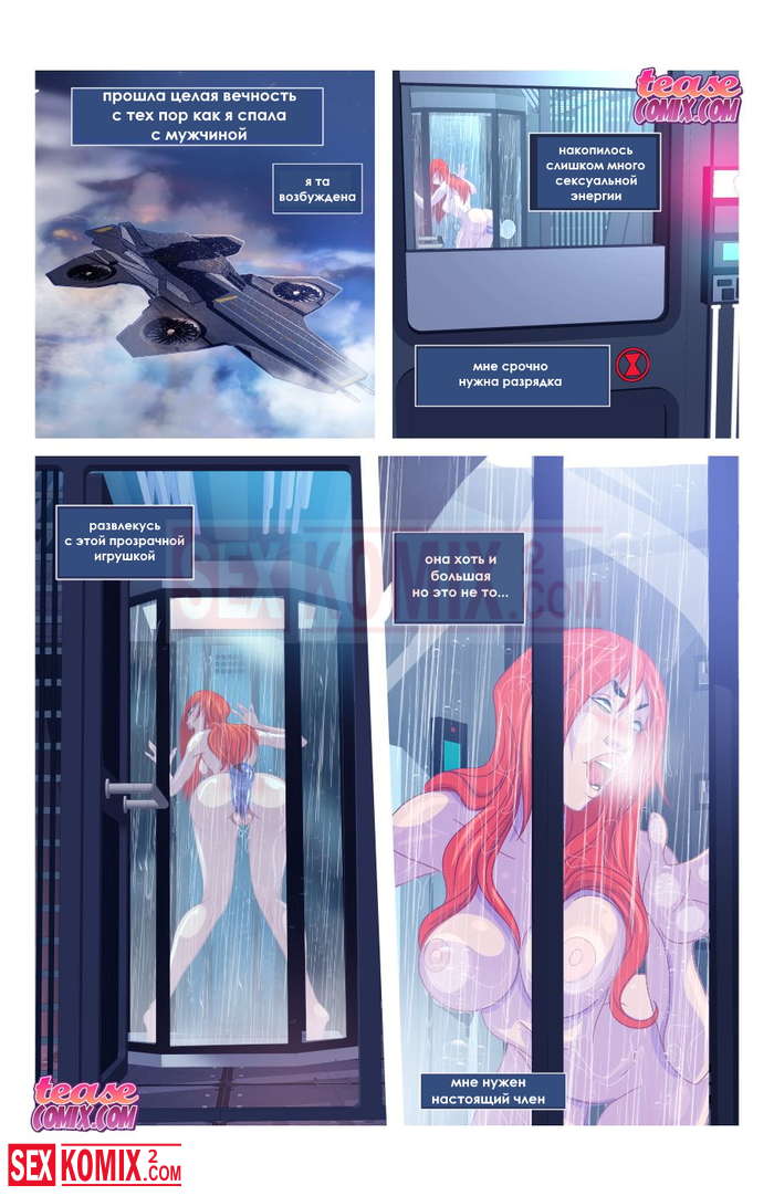 Порно комикс Черная Вдова давно не трахалась. Черная вдова приняла горячий душ и трахнула себя резиновым долдо. Она отправилась на задание с капитаном Америка и там не обошлось без секса.