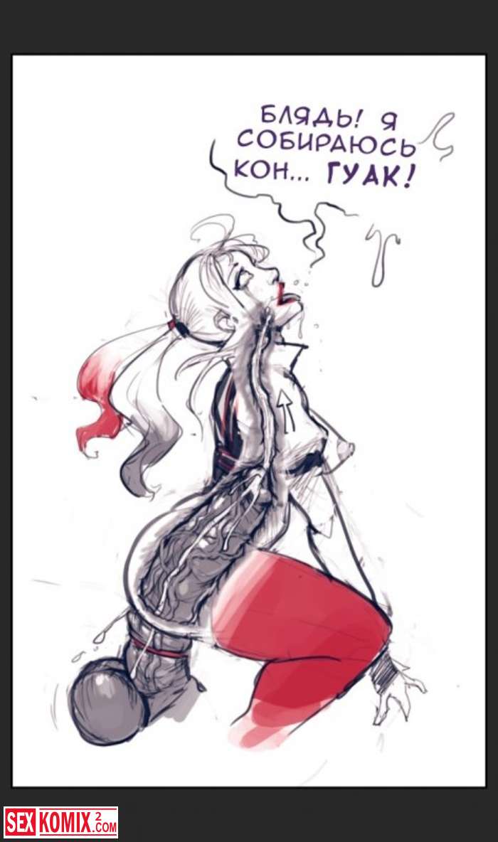 Порно комикс Харли Квинн. Супершлюха. Часть 3. Продолжение анальной баталии развратной блондинки, она не может угомониться и просит своего парня вставить ей член как можно глубже.