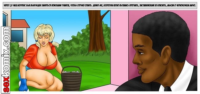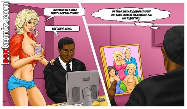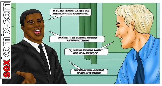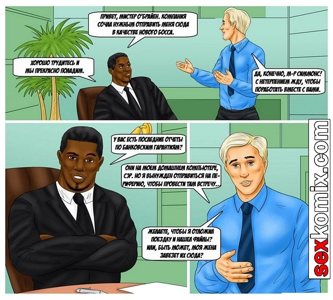 Порно комикс По-американски. Этот комикс о белой богатой цыпочке. Она в своей жизни не видела черный член, но сейчас совершенно случайно наткнулась взглядом на член черного парня, пока он отливал. И была шокирована какой он огромный, девушка сразу решила соблазнить чернокожего парня. Она вышла на улицу и завела разговор. Парень с радостью её трахнул.