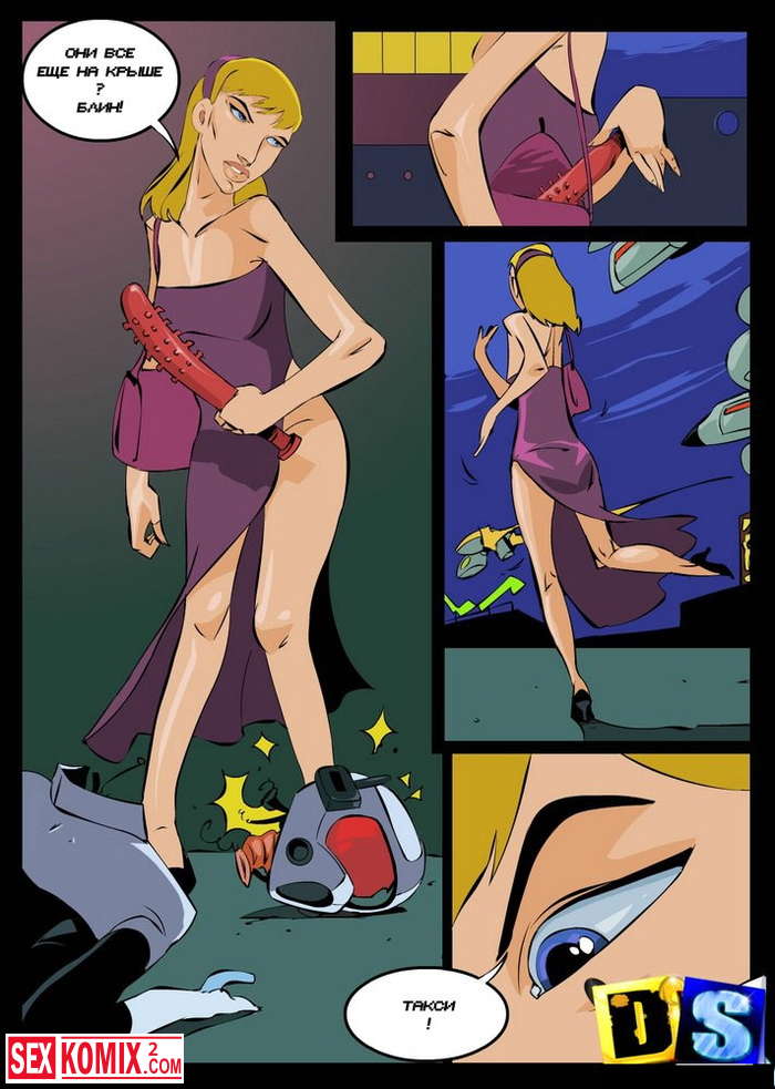 Порно комикс Киттен против Киловат. Kitten vs Killowatt. На блондинку напали киборги убийцы, под рукой у ней оказался резиновый вибратор. Как оказалась с помощью него было легко справиться с роботами.