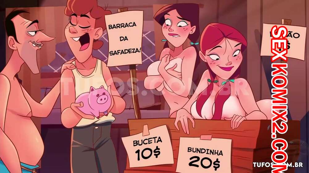 Порно мульт от Tufos. Деревенская семейка. Часть 5. Палатка для поцелуев. В этом секс комиксе на русском вы узнаете, как девушка и сестра главного героя во время ярмарки решили подзаработать и за деньги целовали всех подряд. Наш парень увидев это озверел и не знал как им отомстить, но на помощь пришёл его отец и они придумали план, как наказать этих развратных девок.