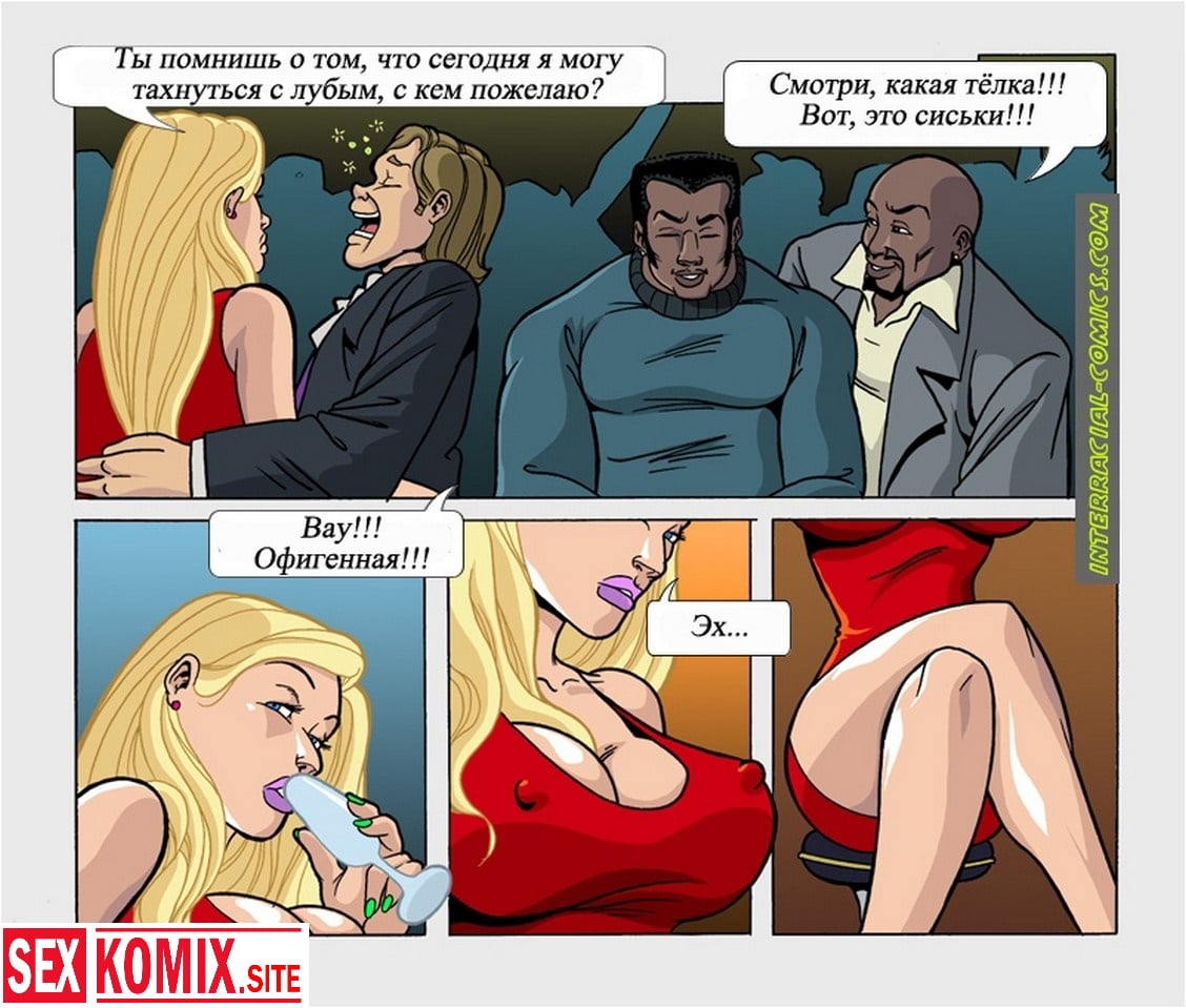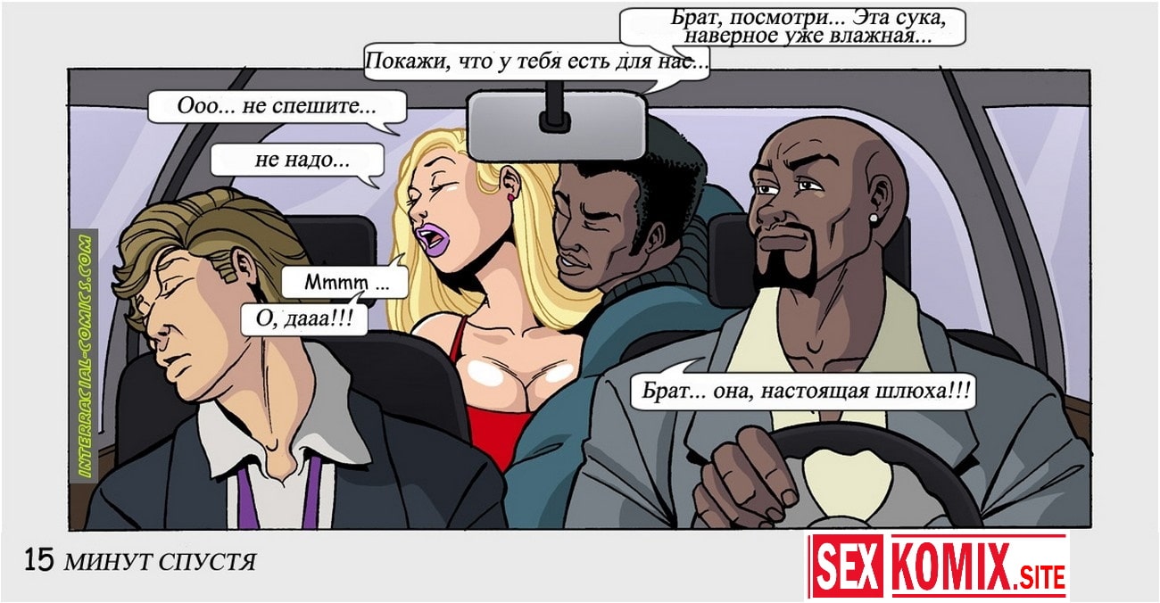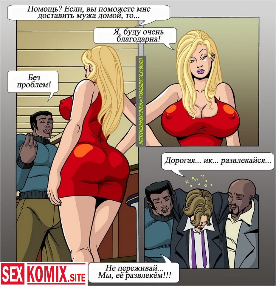 Порно комикс Жены тоже хотят развлекаться. Сексуальная блондинка сидит в баре со своим пьяным мужем, но уже готов. И два чернокожих парня предложили помочь девушке, увезти её и мужа домой. Но по дороге начали приставать к красотке, что бы она рассчиталась за доставку своим шикарным телом. Девушка позволила себя трахнуть, и два черных члена пронзили эту белую киску.