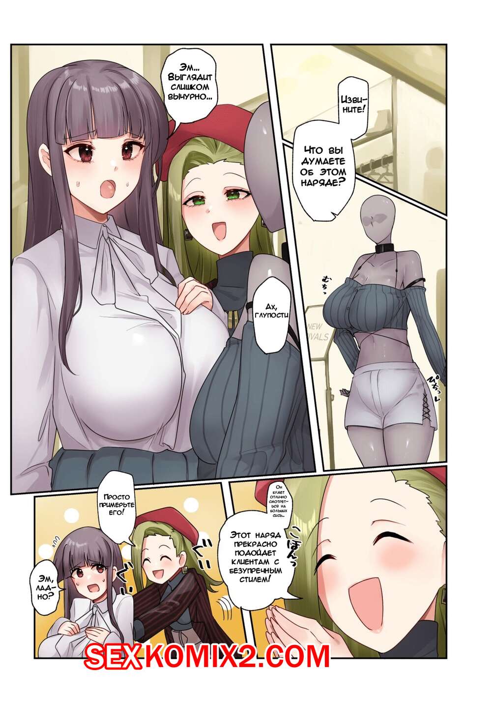 Порно комикс Одержимость в магазине одежды. Hyoui Lover Сексуальная брюнетка пришла в магазин одежды и отправилась в примерочную. Там она невероятно сильно возбудилась и стала ласкать свои большие сиськи и пизденку.