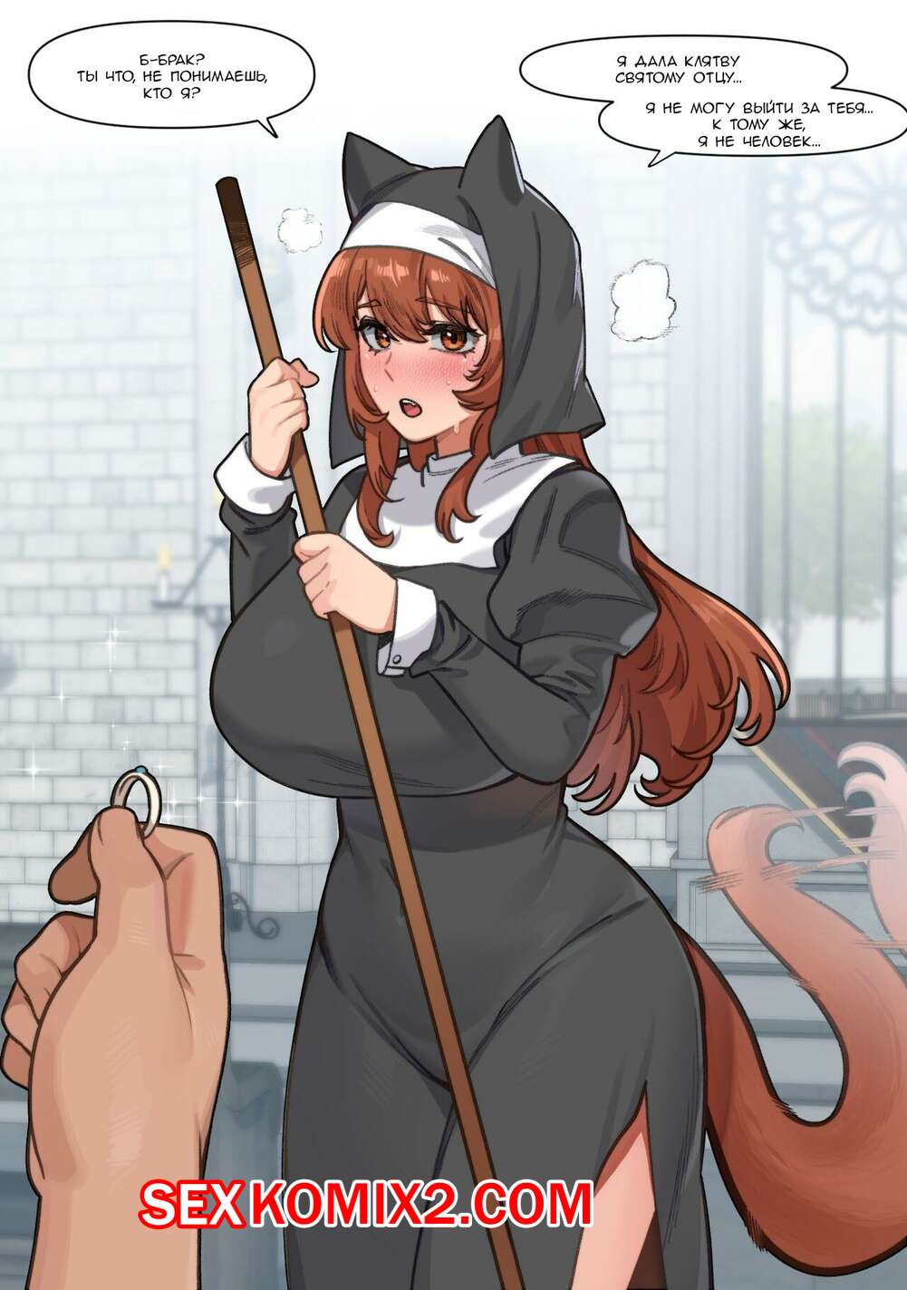 Порно комикс Волчья Монахиня. 6No1 Парень положил глаз на сексуальную брюнетку монашку и решил с ней повеселиться. Он раздел девушку и дал ей отсососать свой большой хуй, после чего выебал ее пизденку и кончил в нее.