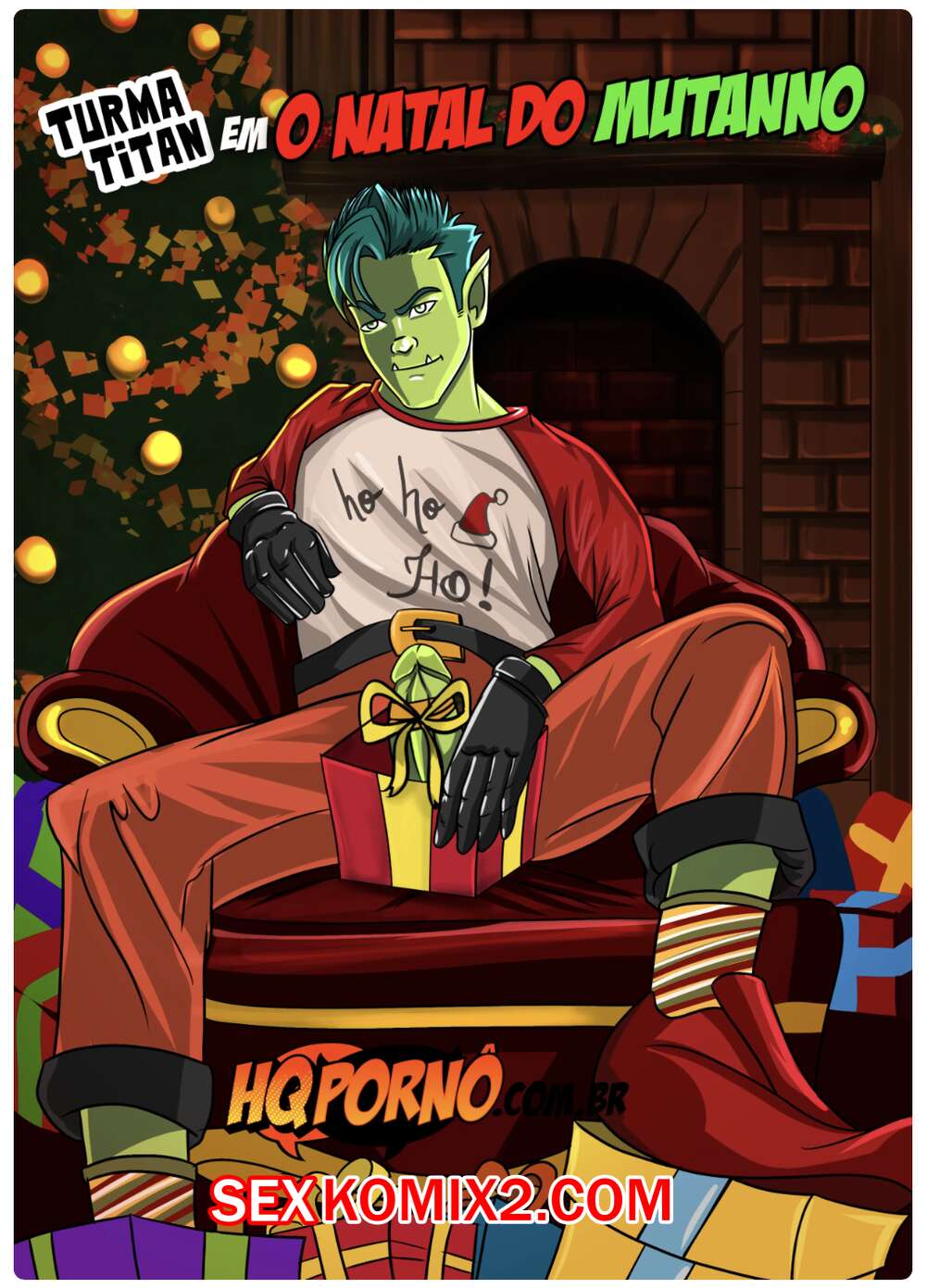 Порно комикс Юные титаны. Часть 2. Turma Titan. HQporno Парень зверь приготовил свой член в подарок для Рейвен на рождество. К парочке присоединилась Старфайр и девушки вместе отсосали большой хуй парня, после чего он выебал пизденку Рейвен и кончил в нее.