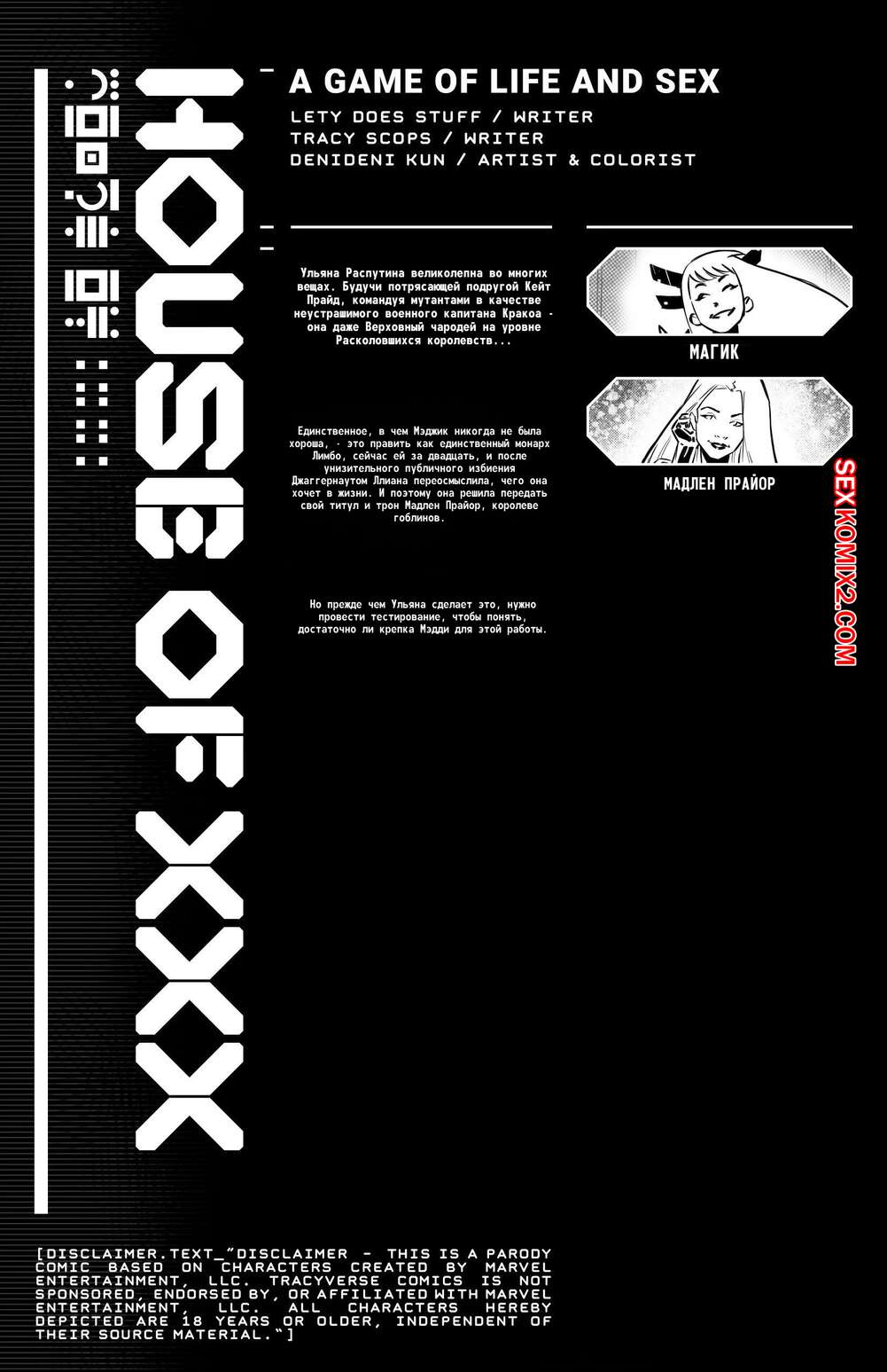 Порно комикс Люди Икс. House Of XXX. Игра жизни и секса. X Men. Tracy Scops Две горячие красотки были очень возбуждены и хотели трахаться. Они разделись и стали ласкать друг дружку, после чего занялись страстной лесбийской еблей.