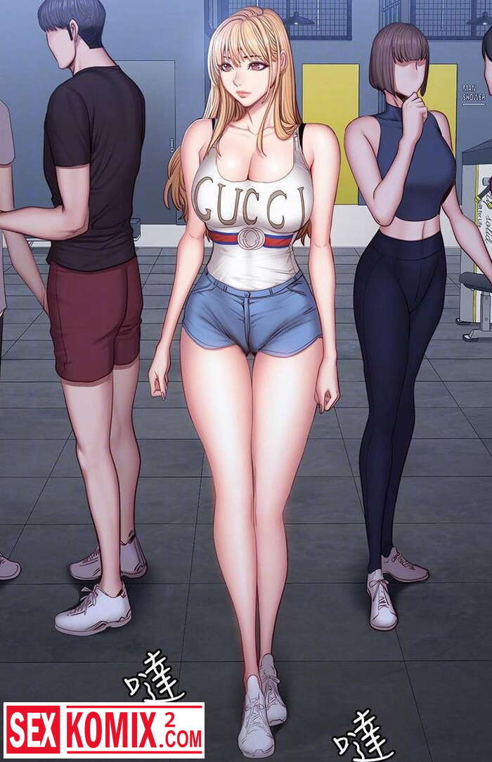 Порно комикс Фитнес. Части 33 и 34. Парень узнал, что сексуальная брюнетка осталась одна, и пошел её навестить, но она спала. Он не удержался и облапал её спящую.